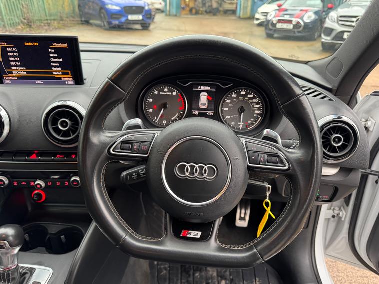 This 2014 Audi S3 2.0 TFSI Hatchback 3dr Petrol S Tronic quattro Euro 6 (s/s) (300 ps) is a sleek and stylish hatchback with just 95603 miles on the clock. Powered by a petrol engine and is ULEZ compliant, making it a great choice for city driving. This compact car may have 3 doors, but it still comfortably seats 5 people, making it perfect for small families or groups of friends. Its features include a 5.8-inch display screen, DAB digital radio, and the Audi Music Interface, along with 12V power sockets in the centre console and rear. With its impressive power and practicality, this Audi S3 is ready to hit the road and provide an exciting driving experience for its next dealer's website delivery available.Part exchange welcome.Extended warranty options available.Part exchange welcome.AA extended warranty available.Trading standards approved dealership.Autotrader highly rated dealership.