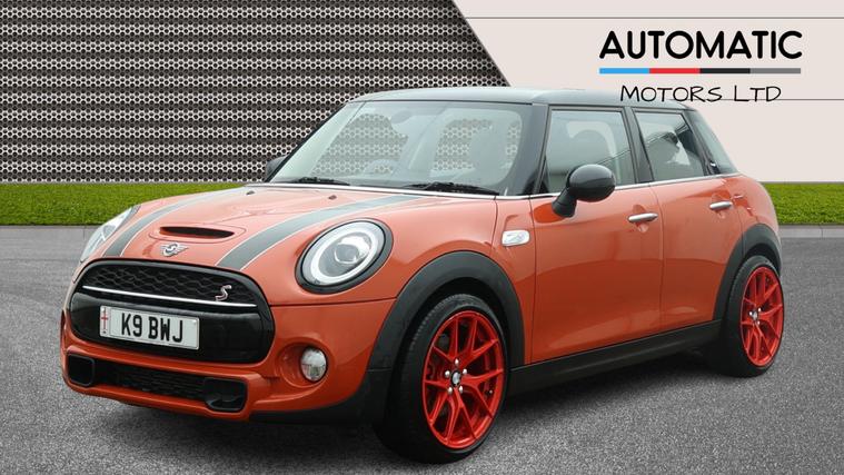 2 KEYS, ULEZ FREE, FRESH SERVICE, TOTAL OF 3 SERVICES, MOT DUE 08/08/2026, LEATHER TRIM, PARKING SENSORS, CLIMATE CONTROL, 18'' ALLOY WHEELS, Here we have a 2018 Mini Hatch 2.0 Cooper S Hatchback with only 49600 miles on the clock. This petrol-powered beauty is ULEZ compliant and comes with MOT until 08/08/2026. With 5 seats and 5 doors, it's the perfect compact family vehicle. The car includes desirable features such as Bonnet Stripes in Black, Heated Front Windscreen, Piano Black Exterior Trim, and Roof and Mirror Caps in Black. Its striking Solaris Orange color is sure to turn heads wherever you go. And with its efficient Euro 6 (s/s) engine generating 192 ps, this Mini is the perfect combination of style, performance, and practicality. Ideal for city driving, this hatchback is a steal for anyone looking for a reliable and stylish ride in British streets.