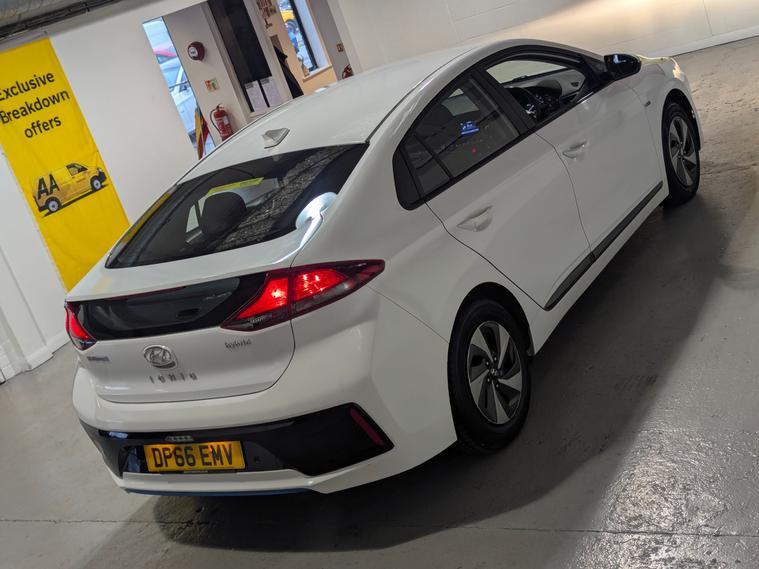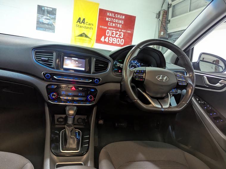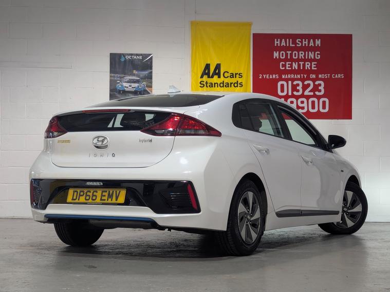 **24 MONTHS PARTS & LABOUR PEACE OF MIND NATIONAL WARRANTY INCLUDED IN THE PRICE**Hailsham Motoring Centre are pleased to be offering this ULEZ compliant 2017 Hyundai Ioniq1.6 h-GDi SE Hatchback 5dr Petrol Hybrid DCT Euro 6 (s/s) (141 ps) forsale, with ONLY TWO FORMER KEEPERS FROM NEW and 64, 000 miles. This car comes with a TOTAL OF 8 SERVICE STAMPS IN THE BOOK, 6 from Hyundai and 2 from independent garages. The car will leave with an interim service, a new MO, T and a PDI. Finished in Polar white with black SE trim.The IONIQ is a little longer than the standard benchmark for the family hatchback class - the Ford Focus - so there's enough space inside for tall adults in both the front and back seats. There's also room for a third adult in the middle back seat - maybe just a small one. The dark IONIQ dashboard has neat blue inserts that lift the ambience of the cabin. It seems cool and modern. The rest of the interior trim is reassuringly conventional, despite all that alternative technology under the skin. While the auto technology underneath is extraordinary, the cabin is unremarkable yet straightforward to negotiate. Equipment levels are good, with standard fitments including a leather steering wheel, Bluetooth/DAB/USB sound system and steering wheel-mounted controls.The IONIQ has a large boot and the positioning of batteries means the back seats can fold flat to increase the load space impressively under that large glass tailgate. The IONIQ has some of the highest owner satisfaction ratings of any car. It's easy to see why. It offers a pioneering choice of green engines, low running costs and great reliability- all in a practical package that looks good and drives well.**WHY BUY FROMUS****Established In 1980****24 Month Warranty On AllCars & vans Over £4500, & Those Not Covered By A Manufactures Warranty**** All Our Cars Are Hpi Clear So You Can Buy With Confidence****Competitive Finance RatesSubject To Status****Multi Branches****Open 7 Days a Week Inc Bank Holidays****Monday - Friday - 8.30amto 6pm****Saturday - 9.00am to 5pm****Sunday - 10am to 4pm****Bank holidays 10am to 4pm**For more pictures and a walk around video please go to https:/ dealer's website call to arrange viewing and a test drive on01323300259.Here at Hailsham Motoring Centre, we have up to 50 cars& a small selection vans on show, also at our Hampden Park branch we have up to 50 further cars & a small selection vans available for viewing, please call 01323300259 for more info.For more information on our Ioniqplease see the benefits below as stated,