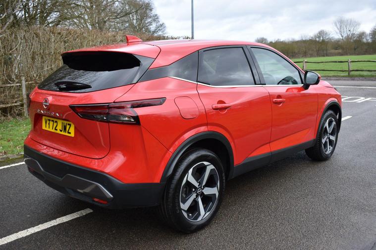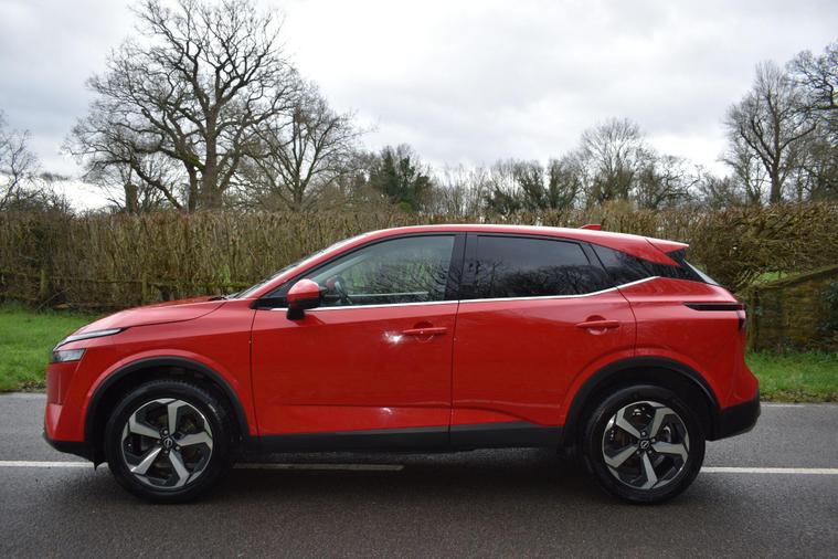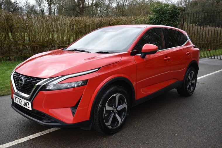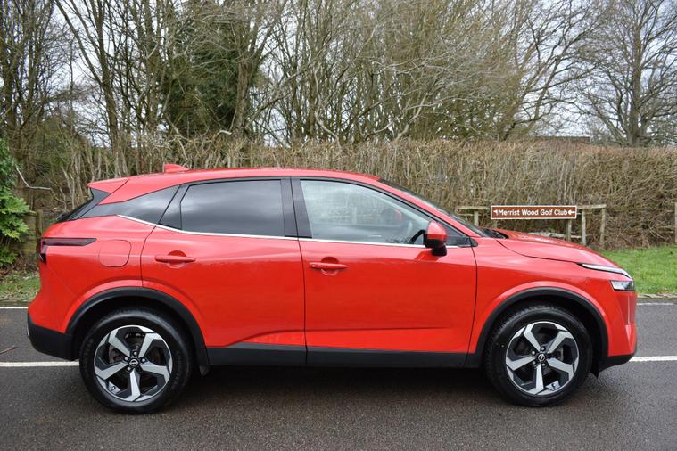 Finished in Red with cloth interior, one owner, privacy glass, front and rear parking sensors, 18'' alloy heels, 6 speed manual, electric folding mirrors, sat nav, Bluetooth, DAB radio, air con, service history, reverse camera with guidelines, cruise control, HPI clear, finance available with this vehicle, for further information please contact us on 01483334205. This 2022 Nissan Qashqai DIG-T N-Connecta presents an exceptional ownership proposition, boasting a single owner and remarkably low mileage for its age, having covered just 19, 453 miles. This Euro 6 compliant 1.3 litre petrol hybrid is equipped with the N-Connecta trim, offering a suite of intelligent features designed for convenience and safety. Drivers will appreciate the Intelligent Around View Monitor, which provides a 360 degree camera view for effortless parking assistance, complemented by Intelligent Auto Headlights that activate automatically thanks to the dusk sensor. Inside, the Automatic Dual Zone Climate Control with Pollen Filter ensures a comfortable cabin environment for all occupants, while the Intelligent Key allows for seamless keyless entry.Further enhancing the appeal of this Qashqai is its low insurance group, making it an economical choice for many drivers. The generous boot space offers practicality for everyday needs and longer journeys alike. These highlights, combined with the vehicle's advanced technology and efficient hybrid powertrain, position this Nissan Qashqai as a superior option compared to other vehicles in its class, offering a blend of comfort, advanced features, and cost effective ownership.