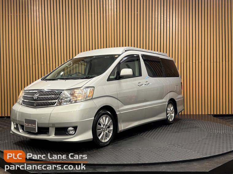 PARC LANE CARS OF GOSFORTH PRESENT THIS BEAUTIFUL LOW MILEAGE TOYOTA ALPHARD 3.0 AUTOMATIC CAMPER. FINISHED IN SILVER PEARL METALLIC WITH BESPOKE GREY DIAMOND LEATHER INTERIOR TRIM!THIS IS A BRAND NEW CONVERSION ON A RECENTLY IMPORTED VEHICLE, FROM JAPAN IN 2022!Drivelodge PoptopFabworx's bedFull upholstery throughout with passenger swivelInsulated and sound deadened throughoutBlackout curtainsLvt flooringLightweight furniture with corian work surfaceIntegrated domestic sink and twin burner hobGas box for camping gas 907 bottle50 litre fridge85ah leisure battery with heavy duty split chargerSargent ec155 power management system.12v and 230v socketsReading lightsLED mood lights16 litre on board water with external gravity fed fill point.FITTED TO THE HIGHEST STANDARD AND MADE WITH THE BEST AVAILABLE MATERIALS - PROFESSIONALLY DONE!THIS CAMPER IS SIMPLY STUNNING AND IS NOT TO BE MISSED!!FINANCE IS AVAILABLE AND PART EXCHANGE IS WELCOMEREG NO. NA52SYF** LISTED SPECIFICATION IS SHOWN AS ACCURATELY AS POSSIBLE. ERRORS MAY OCCUR. PLEASE ASK US TO CLARIFY IF YOU HAVE ANY QUERIES. **