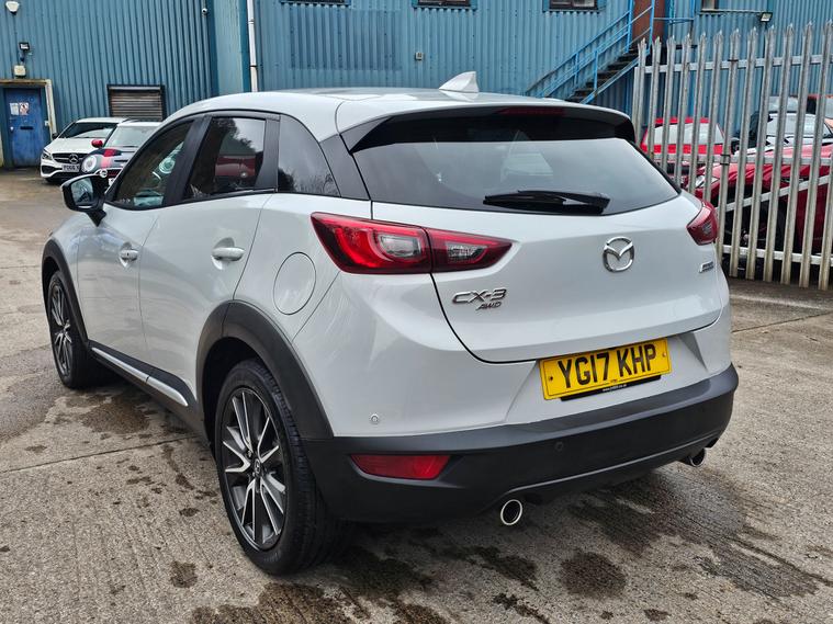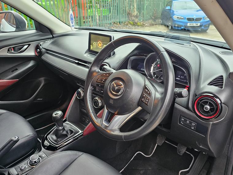 This 2017 Mazda CX-3 1.5 SKYACTIV-D Sport Nav SUV has covered 67027 miles and runs on efficient Diesel fuel. With a current MOT expiry date of 07/01/2027, this 5-door, 5-seat vehicle is ULEZ compliant, making it an environmentally friendly option. Its 4WD capabilities provide reliable performance, and it comes equipped with features such as a 7in Colour Touch Screen Display, Bluetooth Audio Streaming, and Aha App and Stitcher App Integration. The 1.5 SKYACTIV-D engine produces 105 ps, ensuring a powerful driving experience. Whether for city commutes or off-road adventures, this SUV offers versatility and practicality in a stylish dealer's website delivery available.Part exchange welcome.Extended warranty options available.AA standards approved dealership.Trading standards approved dealership.Autotrader highly rated dealership.