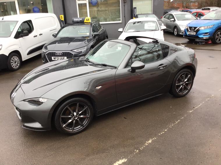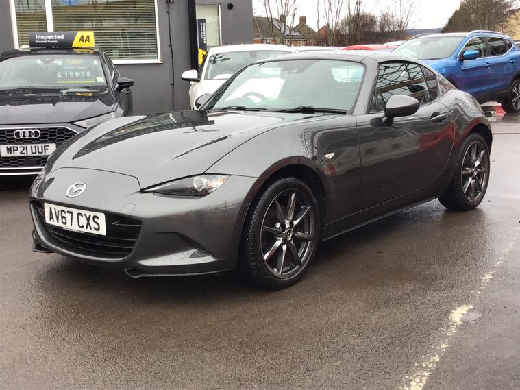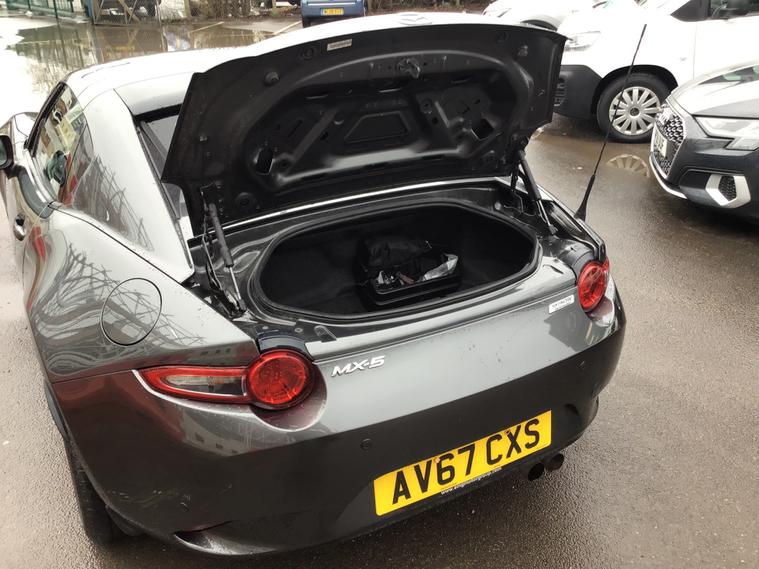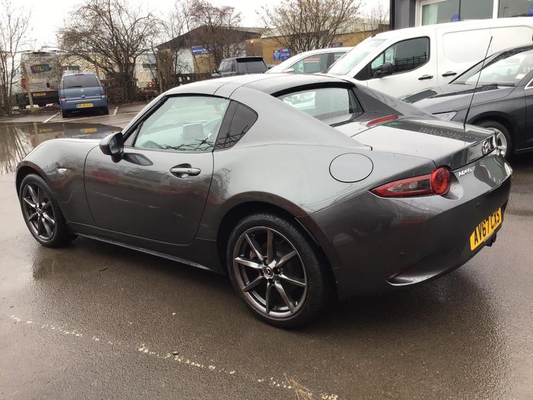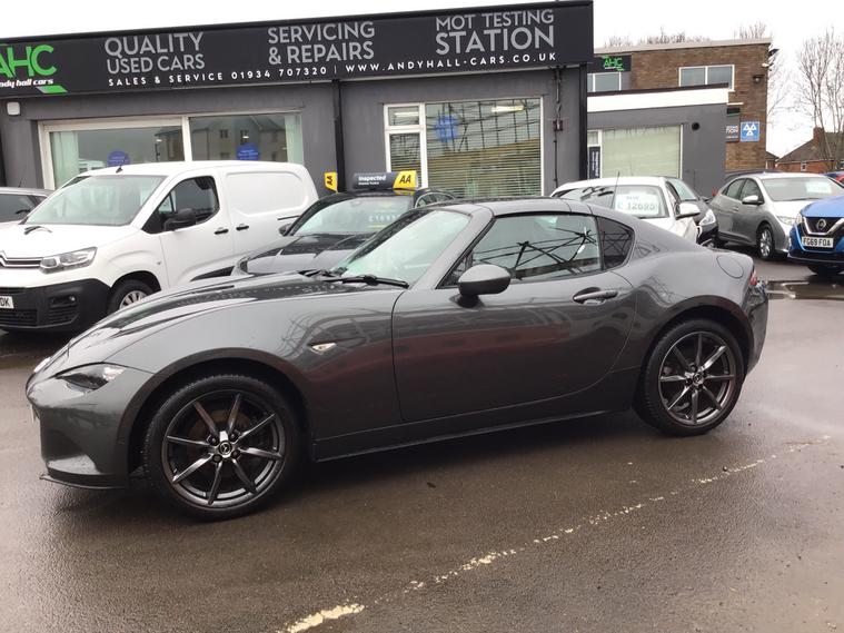 ** NEARLY FULL SERVICE HISTORY ** This 2017 Mazda MX-5 RF is a fantastic 2.0 SKYACTIV-G Sport Nav Convertible with just 48500 miles on the clock. The convertible top is perfect for enjoying the British summer, and with seating for two, it's ideal for a solo driver or a couple. Powered by petrol and boasting 160 horsepower, this Euro 6 compliant vehicle is ULEZ compliant and ready for city driving. The 2-door design and 17-inch alloy wheels give it a sporty look, while features like body-colored door mirrors, a dual exhaust system, and electrically adjustable-heated door mirrors add to its appeal. The electric windows with one-touch auto-down functionality make it easy to enjoy the open road, and the manual transmission puts the driver in full control. Whether it's a weekend getaway or a daily commute, this Mazda MX-5 RF is a stylish and dynamic choice for any driver.