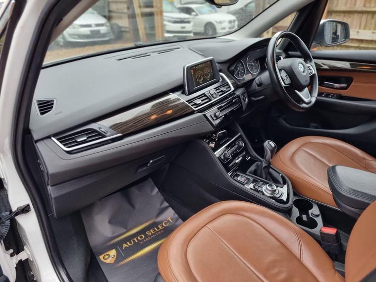 **BMW 218i Luxury Full Peace of Mind Package Warranty Included**A very well-maintained BMW 218i Luxury, offering excellent condition inside and out with a service history and great specification.**Key Features & History:** 2 former keepers Fresh MOT - valid until **09/02/2027** (no advisories) 2 keys Service history **New clutch fitted** Smooth and fault-free drive**Specification:** 1.5L Petrol - Euro compliant Luxury model Brown leather interior Satellite navigation Parking sensors.Heated seats .Isofix High-quality BMW finish throughout**Condition:**Mechanically excellent with no warning lights or issues. Drives very smoothly.Clean interior and exterior for its age. Minor age-related marks may be present, nothing serious.**Included with the vehicle:**?? **6 months Gold Cover Warranty**?? **12 months AA Breakdown Cover**?? Free service kit?? Free local deliveryExtended warranty options available. Nationwide delivery available at competitive rates (price depends on distance). Open **7 days a week** - viewings, inspections and test drives welcome. Please contact us for more information. More cars available at:* dealer's website regards, **Ali**