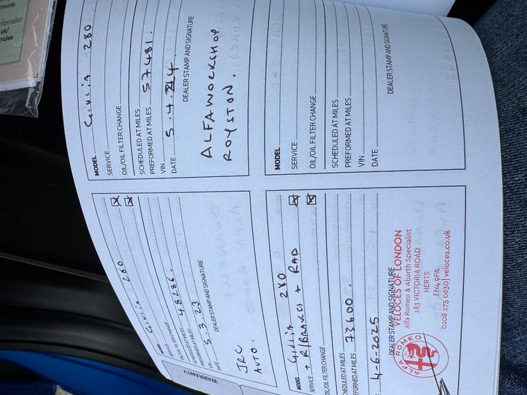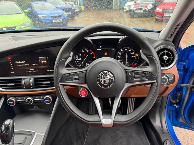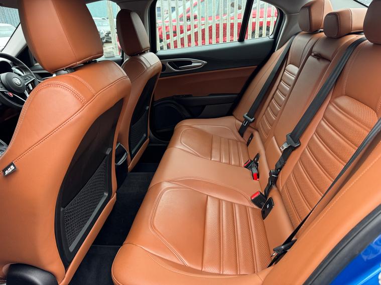 This 2017 Alfa Romeo Giulia 2.0T Veloce Saloon with 81022 miles on the clock is a sleek and stylish option for those in the market for a reliable vehicle. With MOT valid until 18/02/2027 and ULEZ compliant, this petrol-powered car is ready for the road. It boasts 5 seats, 4 doors, and a Euro 6 (s/s) engine delivering 280 ps. The exterior is finished in eye-catching Misano Blue and features 18in Alloy Wheels - 10-Spoke Turbine and 18in Alloy Wheels - 5 Hole Design - Dark Finish, as well as black Brake Calipers. Inside, the Leather Sports Seats in Tan provide both comfort and sophistication. Whether for daily commutes or weekend getaways, this Alfa Romeo Giulia offers a combination of performance, style, and practicality that is hard to dealer's website delivery available.Part exchange welcome.Extended warranty options available.AA standards approved dealership.Trading standards approved dealership.Autotrader highly rated dealership.