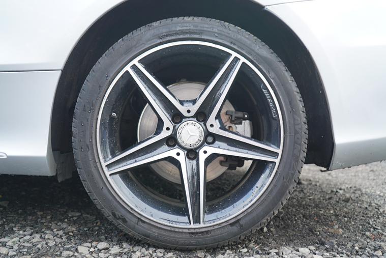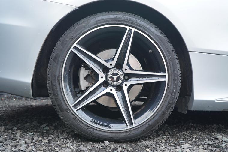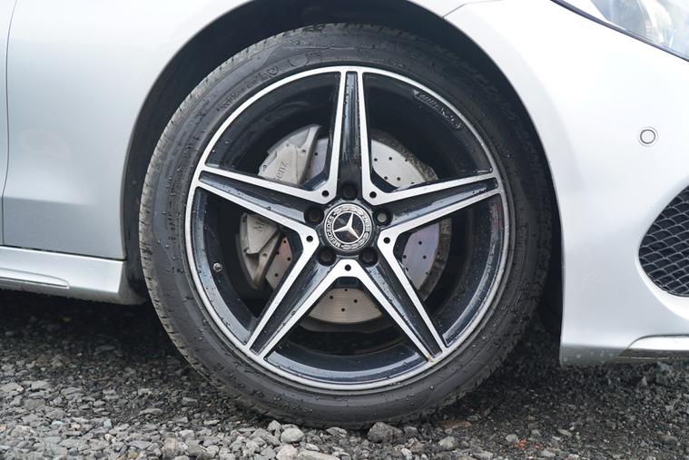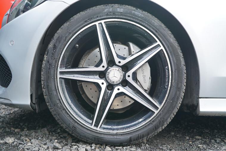- perforated front brake discs and brake calipers with mercedes-benz lettering