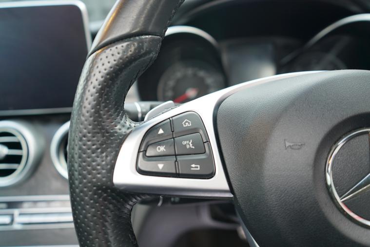 - steering wheel - 3-spoke multi-function amg in leather with flattened bottom section - chrome inserts and perforated leather in grip area