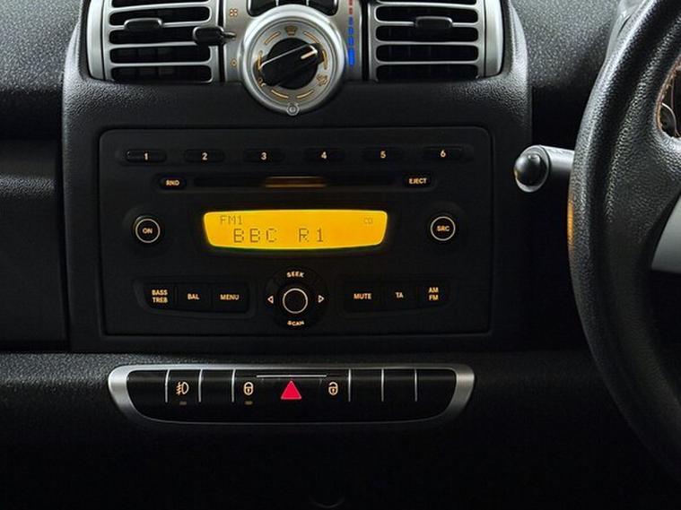 For sale is a sleek 2009 Smart ForTwo 1.0 MHD Pulse Coupe with only 68850 miles on the clock. This stylish coupe runs on petrol and comes with an automatic transmission, making it an ideal city car. With 2 seats and 2 doors, it's the perfect choice for urban driving. Plus, it's ULEZ compliant, so you can drive with peace of mind in low emissions zones. This car comes with a long MOT, expiring on 19/02/2027, and includes features such as 15in 6Spoke Alloy Wheels, a Panoramic Glass roof with sunblind, and TRIDION safety cell door mirror caps & Front grille in Black. Inside, you'll find a Smart Radio with nine Radio & CD player and 2 Speakers. This Smart ForTwo is not only practical but also stylish and fun to drive. Don't miss out on this fantastic opportunity.