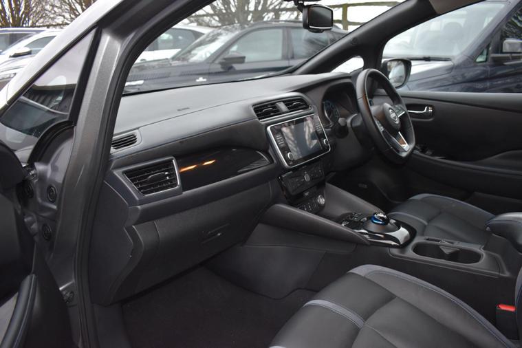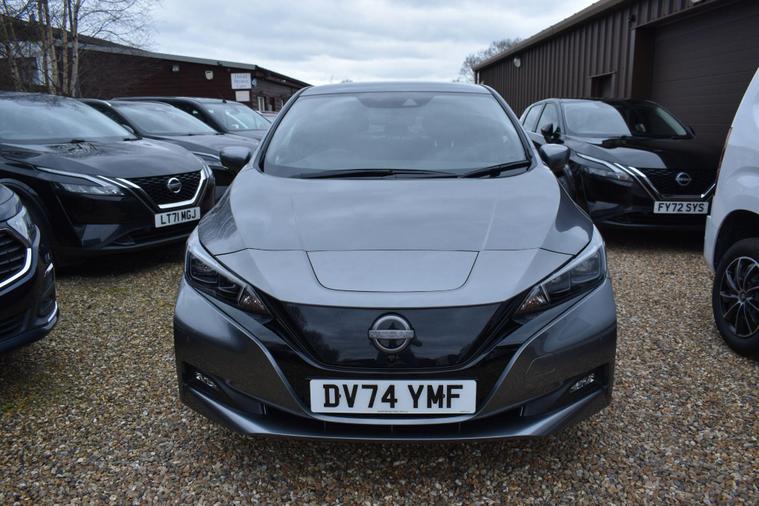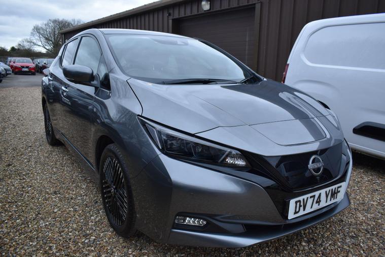 Finished in Grey with two tone black leather and grey suede interior, one owner from new, service history, front and rear parking sensors, 17'' alloy wheels, automatic, electric folding mirrors, adaptive cruise control, heated front seats, keyless entry, keyless start, heated front seats, sat nav, reverse camera with guidelines, air con, heated steering wheel, BOSE sounds, privacy glass, HPI clear, finance available with this vehicle... for further information please contact us on 01483334205. This 2024 Nissan Leaf Tekna presents an exceptional ownership proposition with its remarkably low mileage of just 5574 miles, a testament to its careful use by its single owner. As a fully electric vehicle, it boasts a 41 kWh battery offering a maximum range of 168 miles when new, making it ideal for both daily commutes and longer journeys. Charging is convenient, with a full charge achievable at home in approximately 7 hours and 30 minutes using a 7kW charger, while rapid public charging can take the battery from empty to 80% in around 1 hour and 20 minutes. Inside, you'll find a host of modern conveniences including Bluetooth with Audio Streaming, seamless integration with Android Auto and Apple CarPlay, and Intelligent Auto Headlights that adjust automatically. The Tekna trim also benefits from a comprehensive LED Pack for enhanced visibility and Automatic Climate Control with a Pollen Filter and Timer, ensuring a comfortable cabin environment.The generous boot space of this Nissan Leaf Tekna provides ample room for shopping, luggage, or sports equipment, setting it apart from many other vehicles in its class. Its electric powertrain offers a smooth and quiet driving experience, contributing to lower running costs and a reduced environmental impact. The combination of its advanced technology, practical features, and the peace of mind that comes with very low mileage and single ownership makes this 2024 Nissan Leaf Tekna a truly compelling choice for anyone seeking an efficient and well equipped electric car.