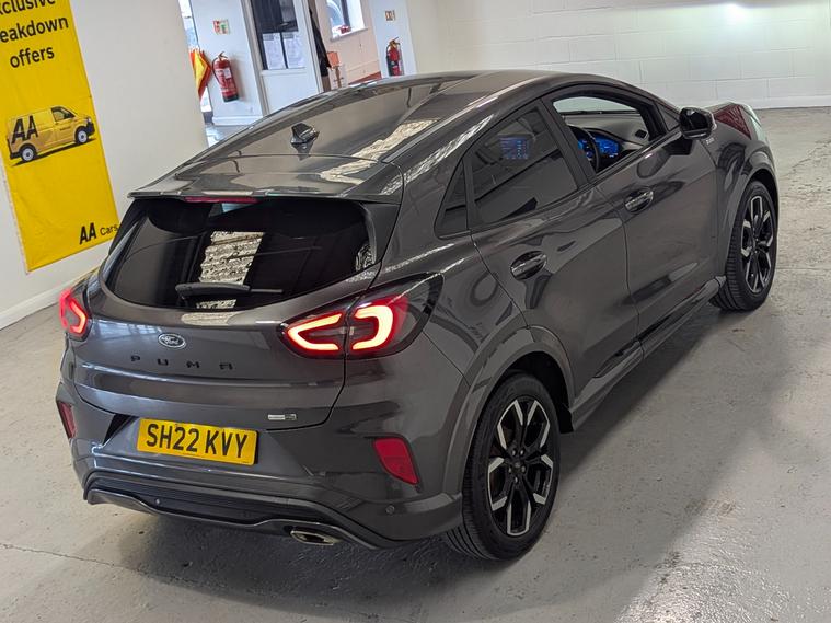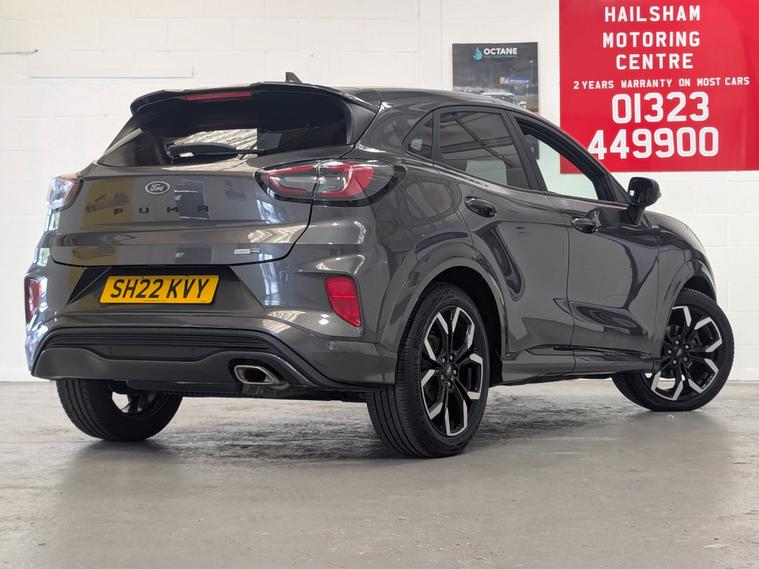 24 MONTHS PARTS & LABOUR WARRANTY. Hampden Park Motoring Centre are pleased to be offering this ULEZ compliant 2022 Ford Puma 1.0 EcoBoost Hybrid mHEV ST-Line X 5drfor sale, with ONLY ONE OWNER FROM NEW and 49, 800 miles. This car comes with FULL MAIN DEALER SERVICE HISTORY. The car will leave with an interim service, a new MOT and a PDI. Finished in Grey Matter with half black leather trim.Ford's small sporty crossover combines SUV style with five-door hatchback practicality. The Puma is as easy and fun to drive as a supermini. Yet when you get inside, it's surprisingly spacious and comfortable. Add to that the impressive array of gadgets on-board and you might start to get interested in adopting this little Puma. The Puma's cabin shares much of its design with Britain's most popular car, the Fiesta. So, it's off to a great start. And, compared to some jazzy crossover rivals, it offers a more reserved look, if that's what you're after.Ford's familiar eight-inch touchscreen system dominates the dash. It's a clear, easy-to-use controller for the music, connectivity, and infotainment options. The driver gets digital instruments and a nicely adaptable driving position.The Puma is based on the Fiesta - one of the best-handling small hatchbacks. That's a great start. It means the suspension is tried and tested. The result is a car that handles much like a hot hatch. It corners neatly, without any tall SUV body roll.More ingenious design means Ford has created a Tardis-like boot. Somehow the Puma's load space is bigger than the boot in a Ford Focus, which is a much bigger car. There's hardly a loading lip to overcome, and the space is wide and square, making it easy for most types of load. The floor can be lowered or lifted for more storage underneath, and of course, the back seats can be folded down as usual.**WHY BUY FROM US****Established In 1980****24 Month Warranty On All Cars & vans Over £4500, & Those Not Covered By A Manufactures Warranty**** All Our Cars Are Hpi Clear So You Can Buy With Confidence****Competitive Finance Rates Subject To Status****Multi Branches****Open 7 Days a Week Inc Bank Holidays****Monday - Friday - 8.30am to 6pm****Saturday - 9.00am to 5pm****Sunday - 10am to 4pm****Bank holidays 10am to 4pm**For more pictures and a walk around video please go to https:/ dealer's website call to arrange viewing and a test drive on 01323300238.Here at Hampden Park Motoring Centre, we have up to 50 carson show, also at our Hailsham branch we have up to 50 further cars available for viewing, please call 01323300238 for more info.For more information on our Puma please see the benefits below as stated,
