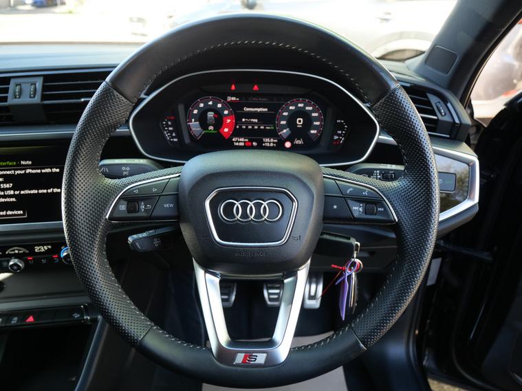 - 3-spoke leather multi-function steering wheel - s badging and grips in perforated leather with contrast stitching