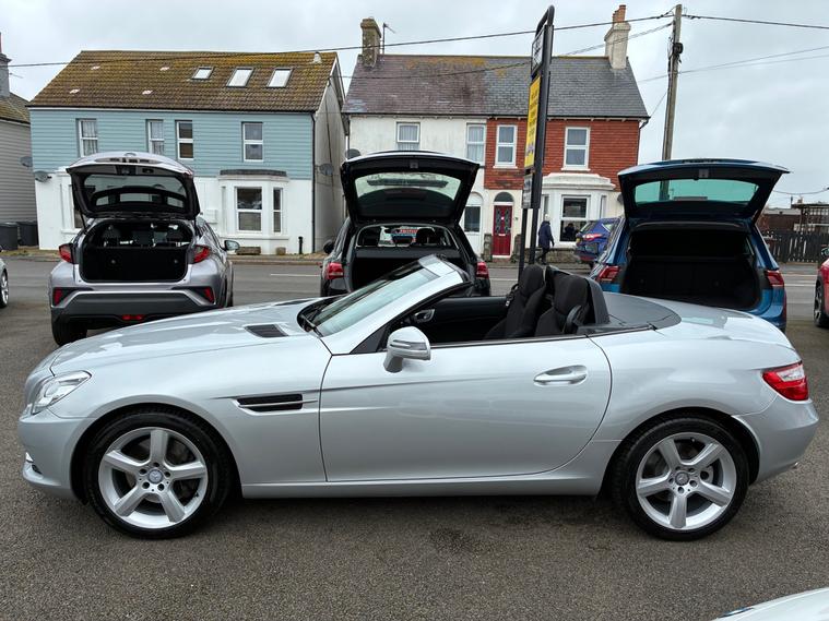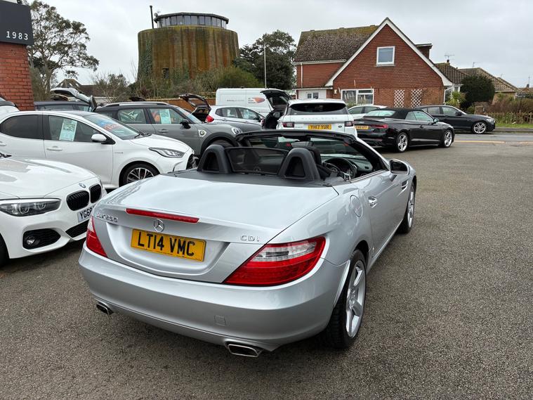 A resplendent Mercedes-Benz SLK 250 2.1 CDi Convertible 2dr Diesel G-Tronic+ Euro 5 (s/s) (204 ps) with an incredible 32, 500 Miles from new. Fantastic Example of this much desired R172 generation roadster. High quality materials can be felt in every feature from the unworn contoured seats to the seamless operation of the Vario electric roof. The 2.1 litre turbo charged engine delivers a exciting performance. The 7 speed automatic transmission adapts to the driver and is seamless. Now becoming more desirable and most sought after, this fabulous example will not fail to impress here.,