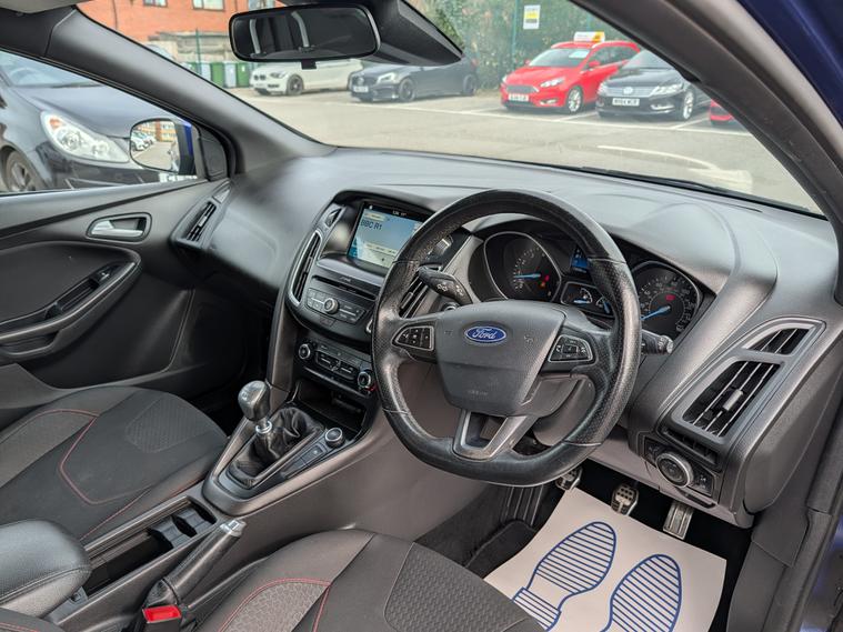 2017 Ford Focus 1.0T EcoBoost ST-Line 125 ps - ULEZ Compliant - Insurance Group 12E - Brand New Timing Chain and Water Pump - 6 Months AA Warranty IncludedA sporty and stylish hatchback that is perfect for commuters, first time drivers or anyone looking for an economical yet fun to drive car. This Ford Focus ST-Line offers sharp looks, responsive performance and excellent running costs, making it a fantastic all rounder.** Performance and Economy **Powered by the punchy 1.0T EcoBoost petrol engine producing 125 ps, this Focus delivers impressive performance while remaining highly economical. The manual gearbox offers smooth gear changes and the sports suspension enhances handling and road feel. It is Euro 6 and ULEZ compliant, making it ideal for city driving and low emission zones. Insurance group 12E also keeps premiums affordable.** Features and Technology **Ford SYNC3 8in touchscreen with DAB and satellite navigation, Bluetooth connectivity and media streaming, Colour TFT instrument cluster display, Keyless start, Air conditioning, Quickclear heated front windscreen, 17in Rock metallic alloy wheels, LED daytime running lights, Rear LED lights.** Comfort and Practicality **Sports style front seats with driver lumbar adjustment, Leather trimmed multifunction steering wheel, 60 40 split folding rear seats, Premium centre console with sliding armrest, Electric front windows, Spacious boot area ideal for daily use or weekend trips.** Safety and Security **Thatcham Category 1 alarm, Remote central double locking, Electronic Stability Programme with traction control and emergency brake assist, Intelligent Protection System, Torque Vectoring Control, Tyre pressure monitoring system, Multiple airbags throughout.** Ownership and Condition **This vehicle has covered 79000 miles, which is normal for its age, and it drives very well. It has had 2 owners from new. A brand new timing chain and water pump were completed on 10/02/2026 for added peace of mind. A full MOT will be done shortly.** AA Benefit and Warranty **A 6 month AA warranty included, which can be extended12 month free AA breakdown cover£75 gift card toward your next MOT and serviceDrive away insurance available T&Cs applyFinance options available** Next Steps **This Ford Focus is a fantastic choice and ready to drive away today. To book a test drive, request a personalised video walkaround, or reserve this car, call us on +44 7863 107747 or visit our website at dealer's website
