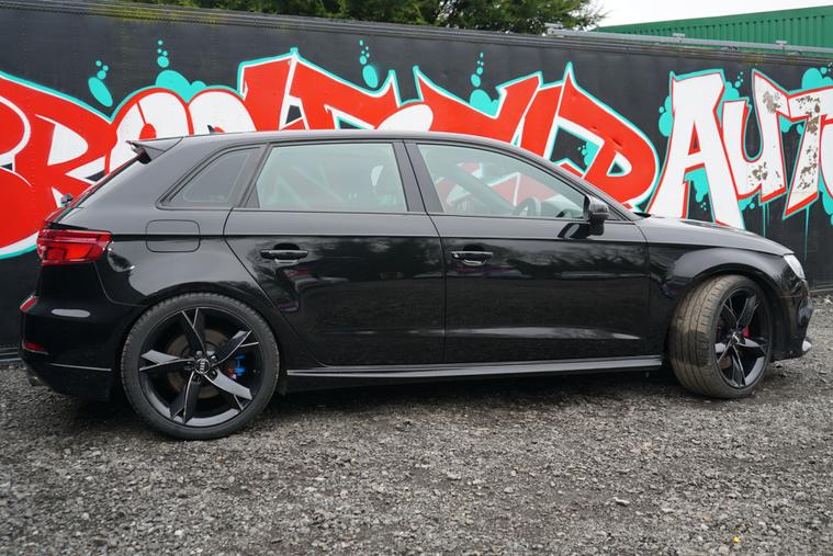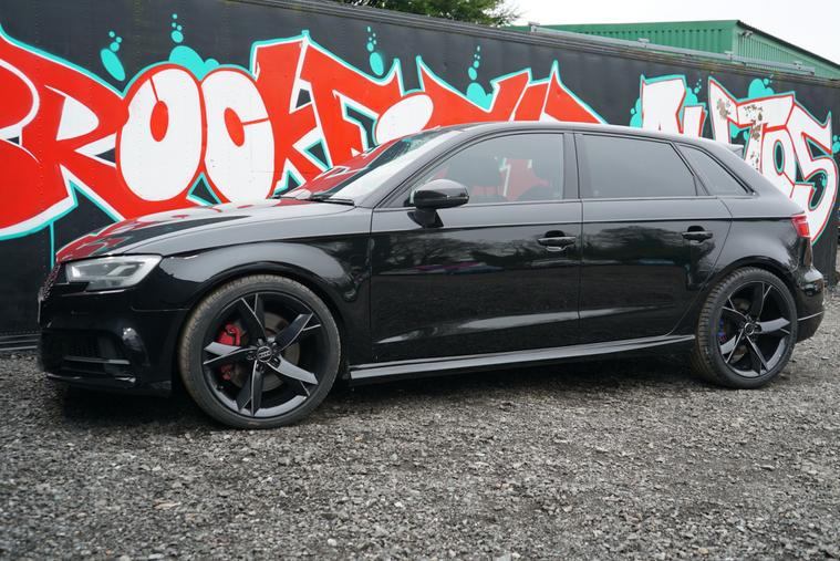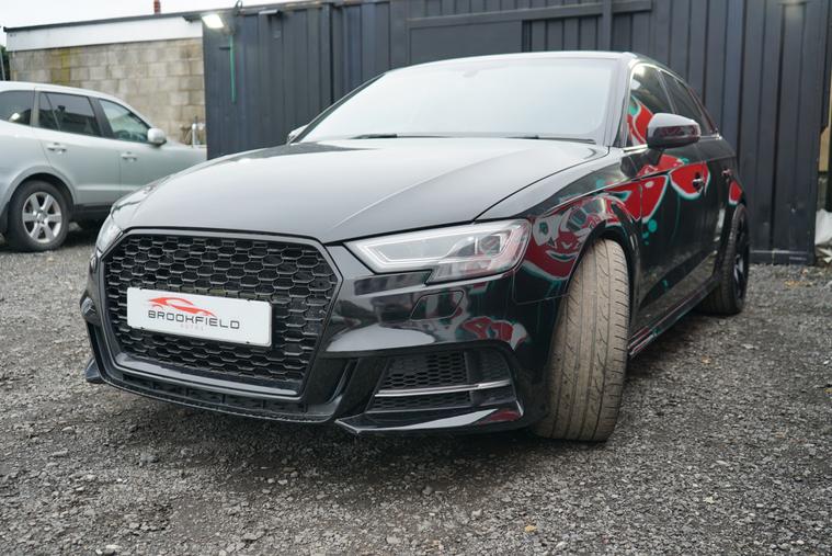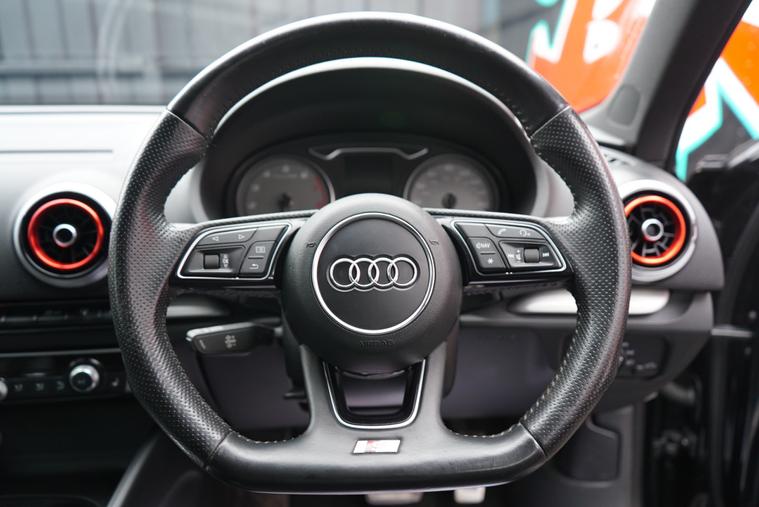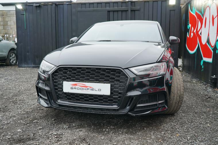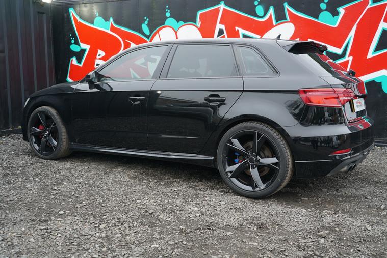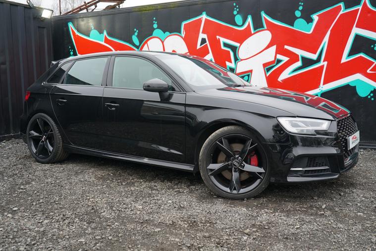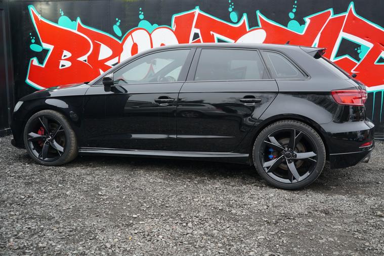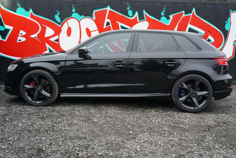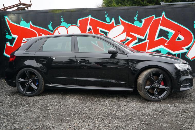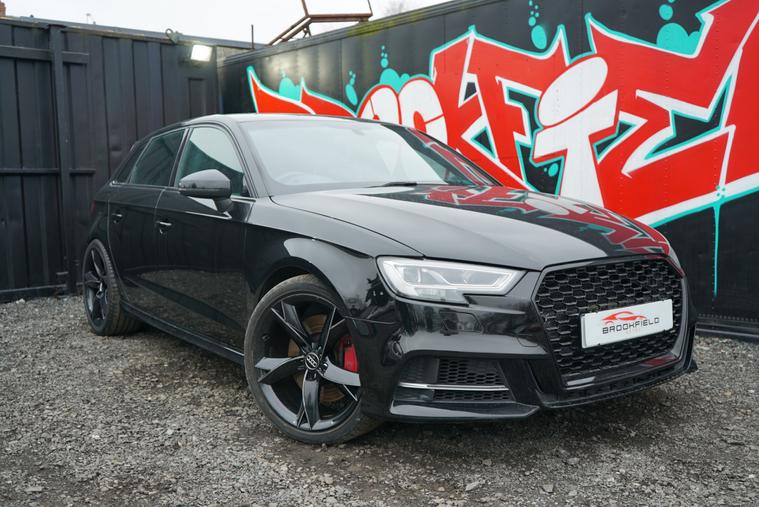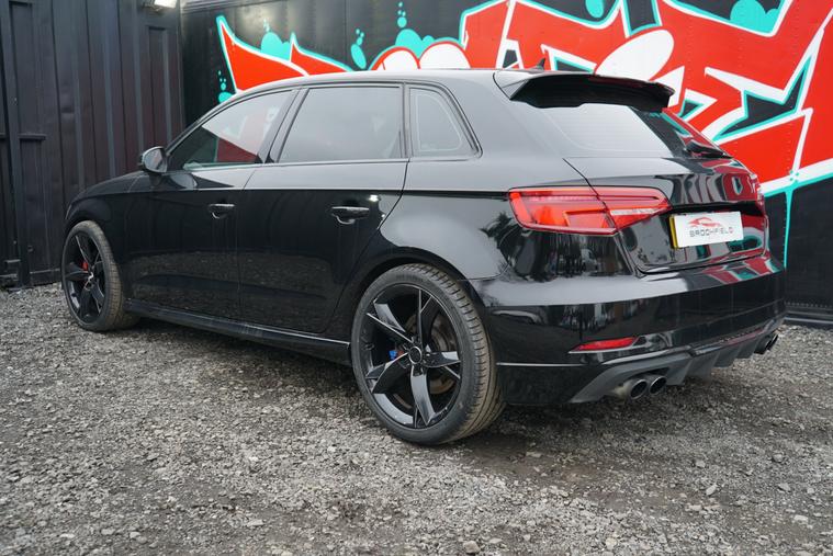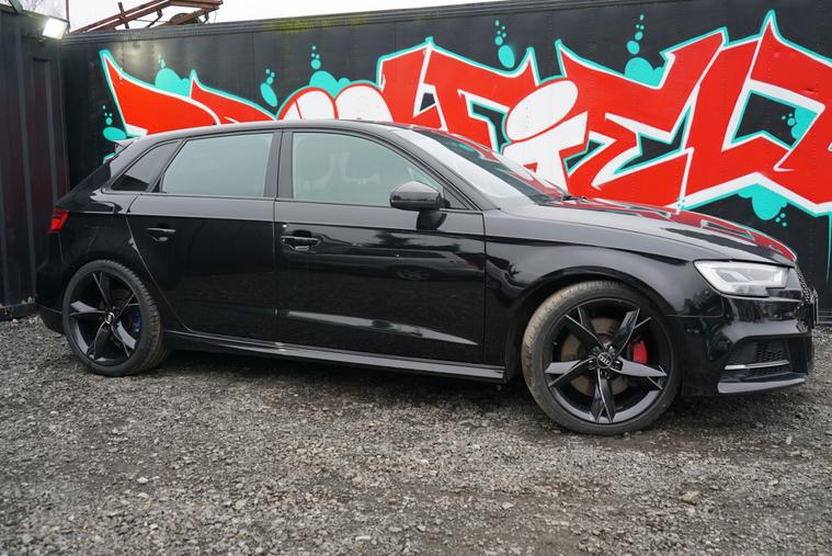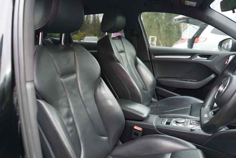 Brookfield Autos are proud to present to market our lovely 2017 Audi S3. Supplied in Black, and complimented by a black nappa leather and alcantara interior, it presents beautifully. Black Alloys, privacy glass and trademark S3 quad exhaust and matte chrome wing mirror covers complete the look. On the interior, it has a flat bottomed multifunction steering wheel, Black Styling Pack, Heated Seats, satellite navigation, DAB digital radio. Only 3 owners from new, with a superb service history record. An absolute credit to its previous keepers, we think you will struggle to find a better cared for example in better condition. Comfortable and sedate when it needs to be, with the legendary Quattro all-wheel drive system always on hand should conditions deteriorate and 306 horsepower under your right foot, this is the perfect all round vehicle.