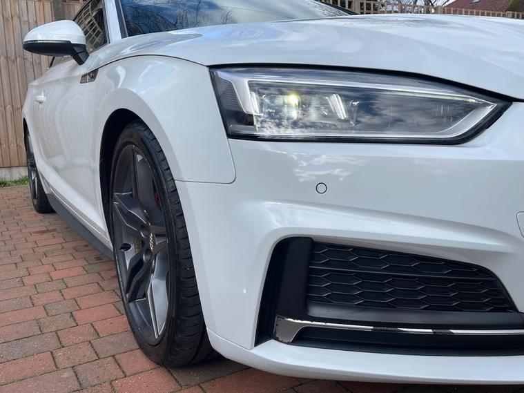 This 2020 Audi A5 2.0 TFSI 35 S line Coupe 2-door petrol car has only 59000 miles on the clock and comes with a full MOT until 15/01/2027. With its sleek coupe design and ULEZ compliance, this car is perfect for city driving. The petrol engine provides a powerful and efficient ride, while the 4-seat capacity offers both comfort and practicality. The 19in alloy wheels and chrome-plated exhaust trim add a touch of sophistication, while the air inlets in matt aluminium give it a sporty edge. With anti-theft locking wheel bolts and body coloured door mirrors, this Audi A5 is both stylish and secure on the road.