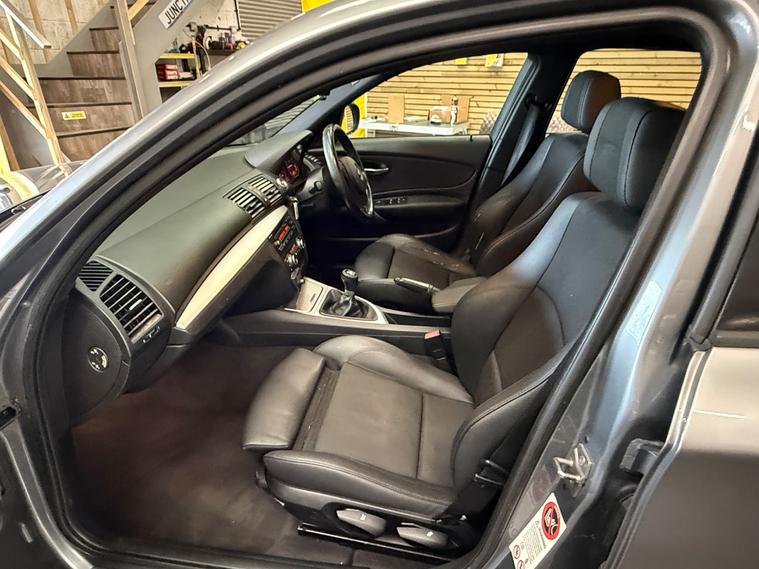 This BMW 118d comes with 2 keys, It has 11 service stamps with 6 BMW main dealer. It has a brand new MOT and service. The spec includes Half black leather trims with after market parrot BT device, Also has a radio and AUX input and 17'' alloys.