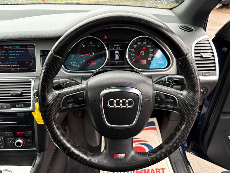 Just arrived, Comes with New 12 Months MOT, Serviced and fully valeted, be the first to view this car. Feel free to give us a call for any further details or to book an appointment for a test drive, All vehicles considered for part exchange at competitive rates. CARD PAYMENTS ACCEPTED, FINANCE CAN BE ARRANGED, Standard warranty on all vehicles, Extended warranties available, Drive away the same dayFor sale is an Audi Q7 4.2 TDI V8 S line SUV with 111000 miles on the clock. This 5-door, 7-seat SUV runs on diesel and comes with a MOT that expires on 26/11/2026. The Euro 4 (340 ps) engine is equipped with a Tiptronic quattro transmission, providing a smooth and powerful drive. On the exterior, the Audi Q7 comes with 20in 5Spoke design Alloy Wheels and Polished Aluminium RoofRails, along with a S Line look radiator grille. Inside, the vehicle features a 3Spoke Leather Multifunction S Line Steering Wheel with paddle shift Controls & Aluminium detailing, as well as a Black Cloth headlining giving a luxurious feel. This Audi Q7 is a stylish and reliable SUV, perfect for a family or anyone in need of a spacious and comfortable vehicle.,