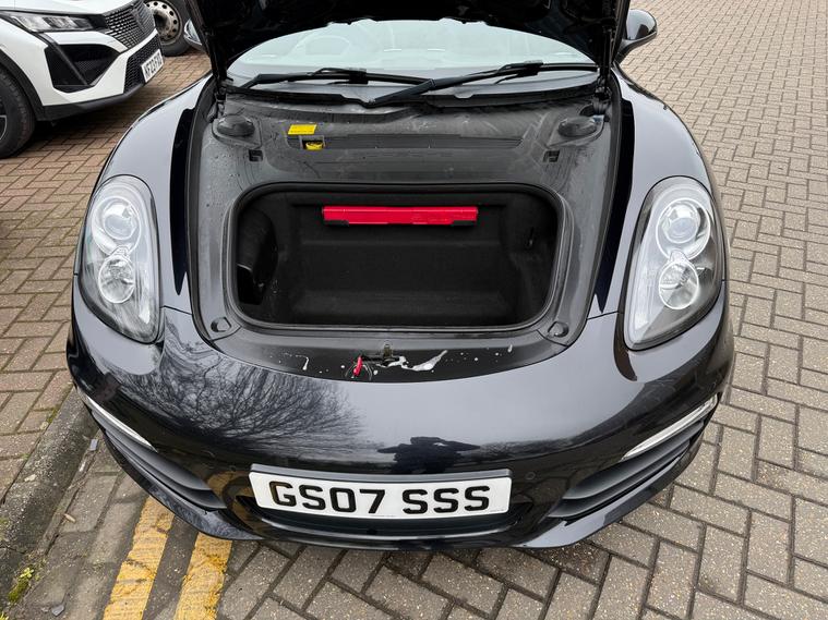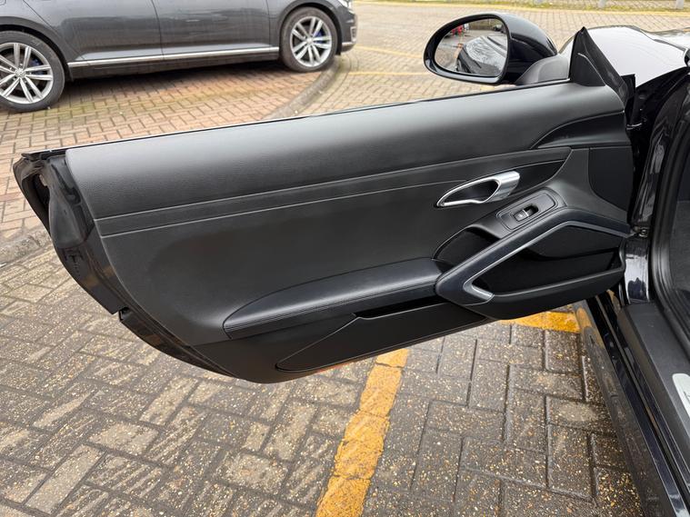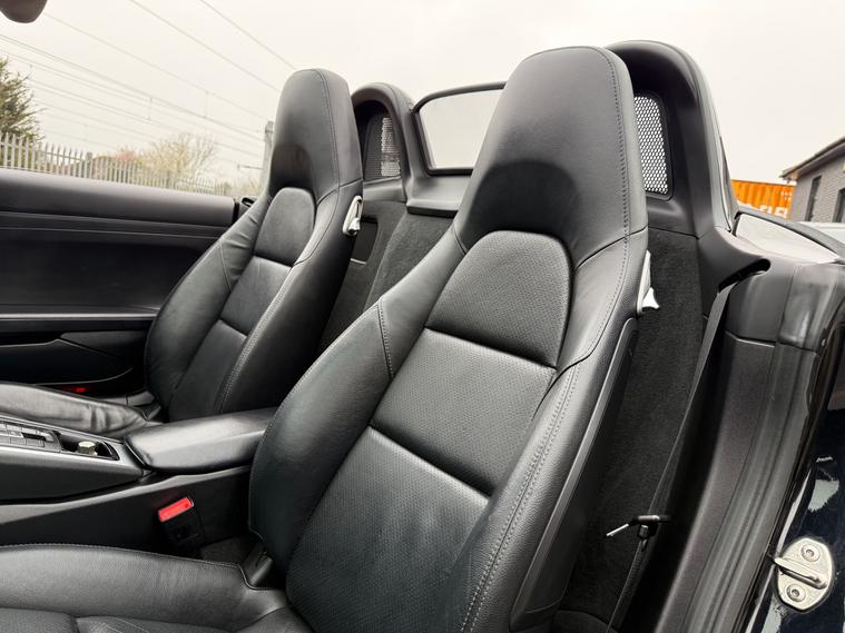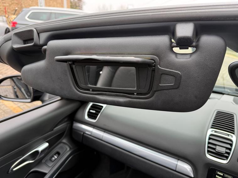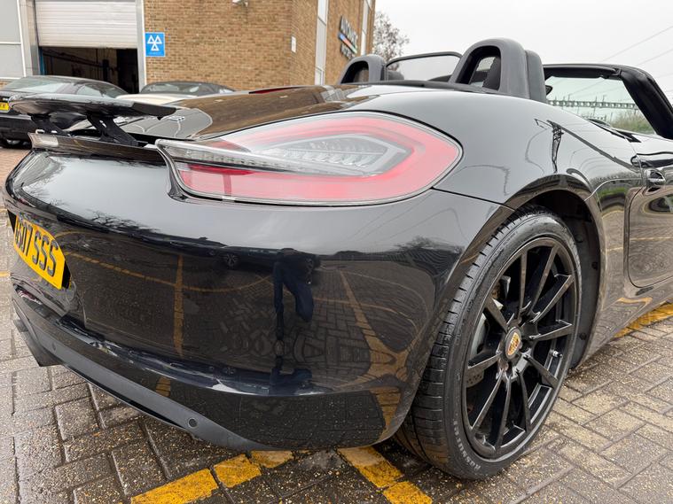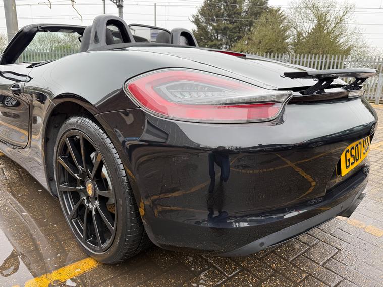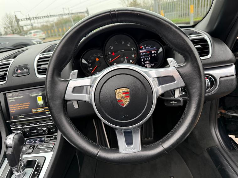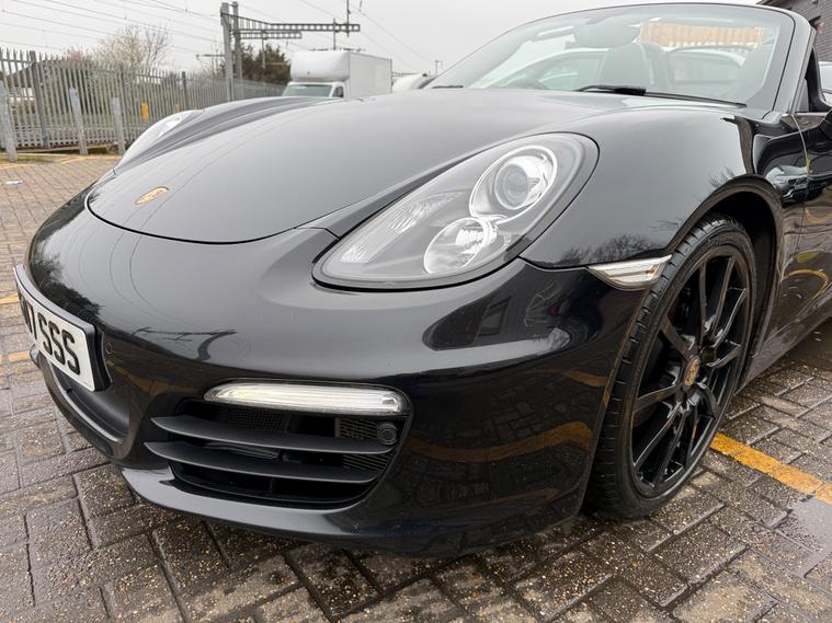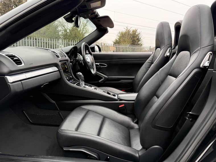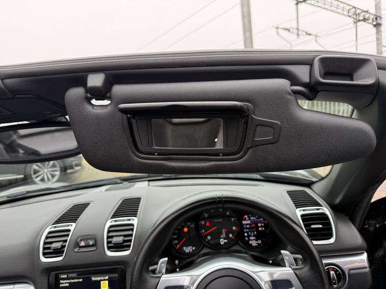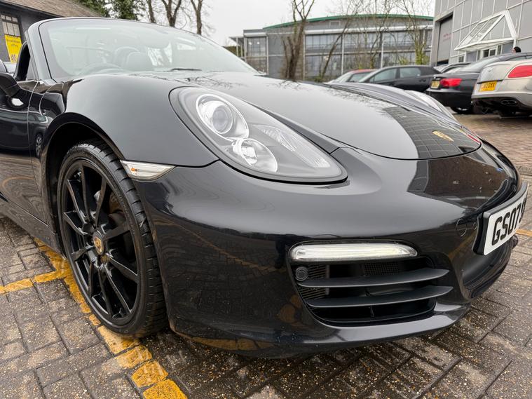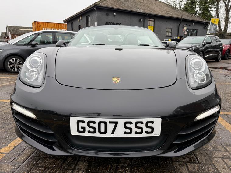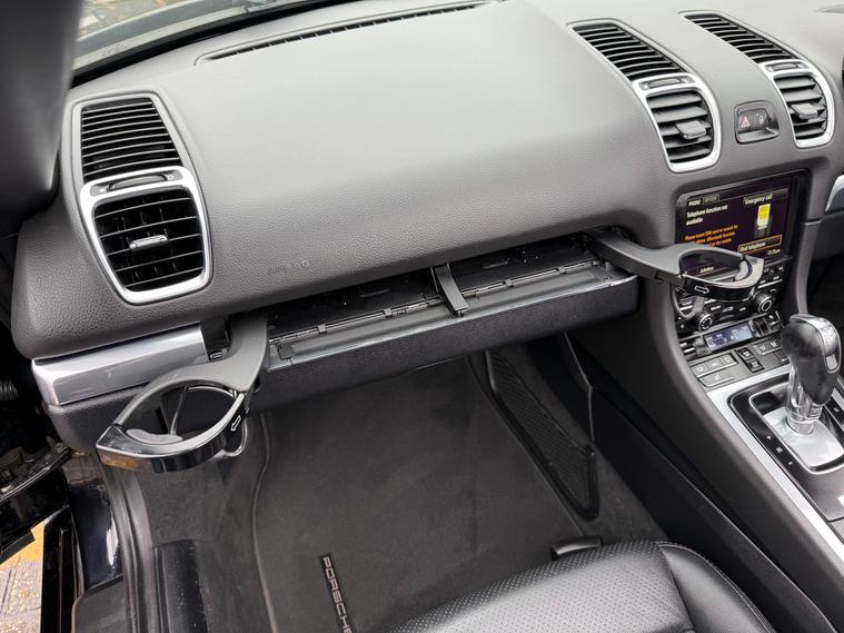 2 KEYS, ULEZ FREE, FRESH SERVICE, TOTAL OF 8 SERVICES (4 MAIN DEALER SERVICES), FRESH MOT, SATNAV, BLUETOOTH, PARKING SENSORS, AIRCON, CLIMATE CONTROL, LEATHER TRIM, 20'' ALLOY WHEELSThis 2015 Porsche Boxster 2.7 981 Convertible with a Petrol engine and PDK transmission has 91200 miles on the clock. It is ULEZ compliant and comes with an MOT that expires on 03/06/2026. The convertible has 2 doors, 2 seats and comes with features such as 18in Alloy Wheels, Aluminum Subframe at Rear, Auto-Deployed Rear Spoiler, and Auxiliary LED Light Modules in Front Apron Containing Daytime Running Lights and Position Lights. In addition, it has a bar in front of the front end air intake in black, making it a stylish and powerful vehicle perfect for those who love the open road.