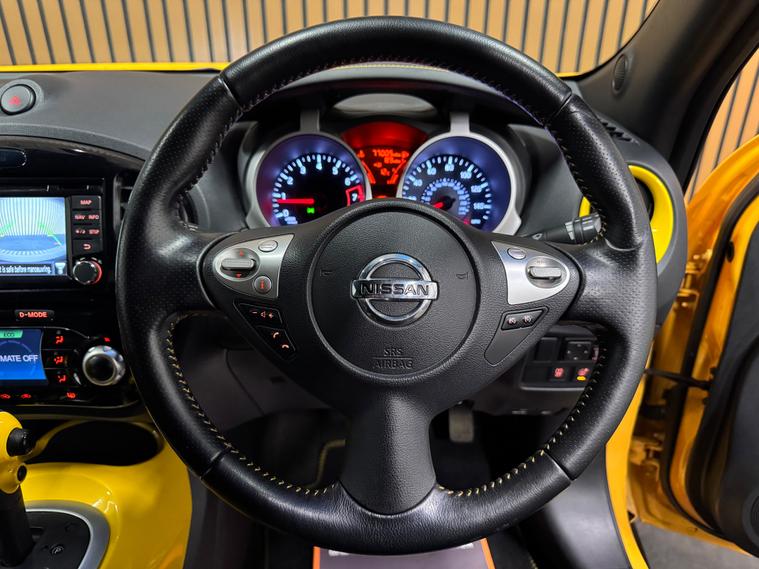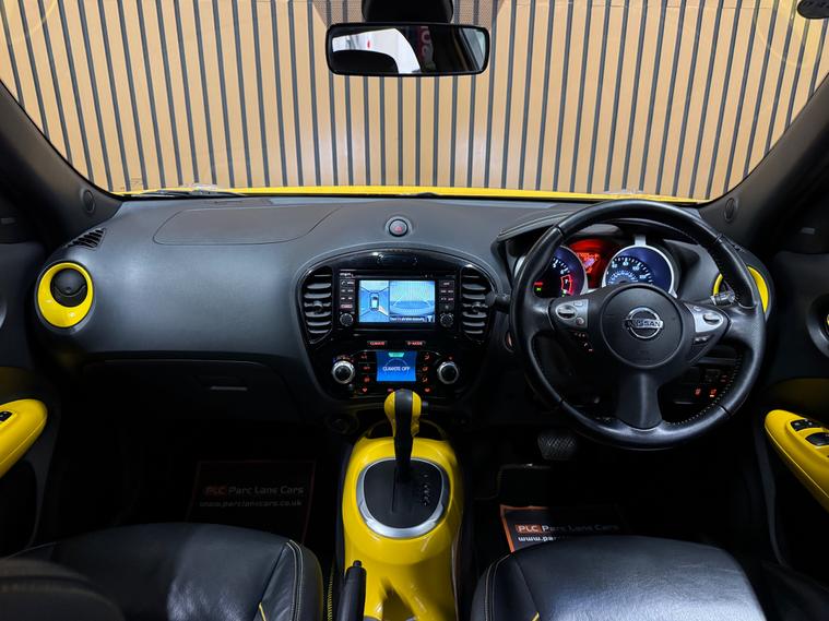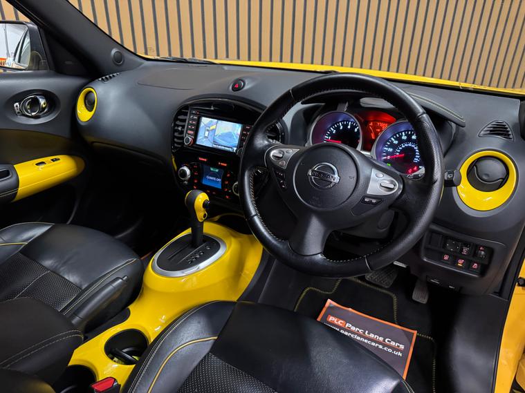 PARC LANE CARS OF GOSFORTH PRESENT THIS BEAUTIFUL AUTOMATIC NISSAN JUKE TEKNA 1.6. FINISHED IN SOLAR YELLOW WITH STUNNING BLACK LEATHER INTERIOR TRIM WITH YELLOW PIPING!THIS JUKE HAS COVERED ONLY 76000 MILES AND COMES WITH A COMPREHENSIVE SERVICE HISTORY, SERVICED AT THE FOLLOWING INTERVALS;06/12/201914802869 BOSCH SERVICE21/11/201914802869 BOSCH SERVICE24/11/201914802869 QUICK FIX GARAGE25/03/201914802869 KWIK FIT LANARKSHIRE04/01/201914802869 ARNOLD CLARK14/11/201914802869 CHARLES HURST NISSAN12/11/201914802869 CHARLES HURST NISSANSUPPLIED WITH 2 REMOTE KEYS AND FITTED WITH THE FOLLOWING FACTORY EXTRAS;Air ConditioningAuto Climate ControlAutomatic LightsAutomatic WipersAux InBluetoothCruise ControlDABFull Leather TrimHeated SeatsSatellite NavigationReverse Cameraand much much more....THIS CAR IS SIMPLY STUNNING AND IS NOT TO BE MISSED!!FINANCE IS AVAILABLE AND PART EXCHANGE IS WELCOMEREG NO. WJZ 7025** LISTED SPECIFICATION IS SHOWN AS ACCURATELY AS POSSIBLE. ERRORS MAY OCCUR. PLEASE ASK US TO CLARIFY IF YOU HAVE ANY QUERIES. **