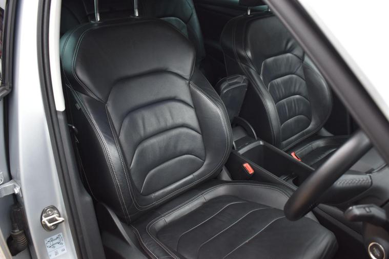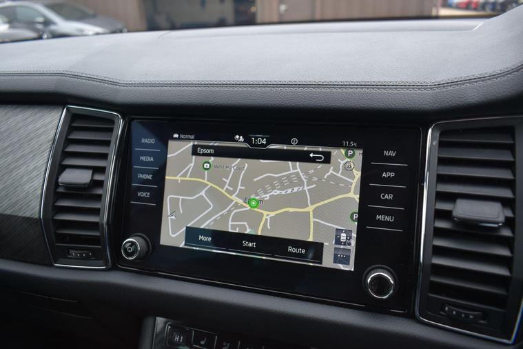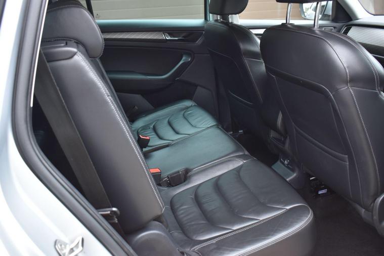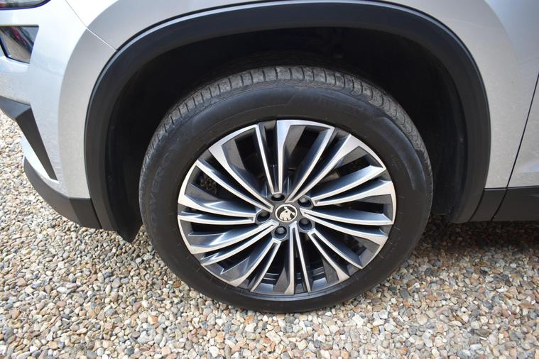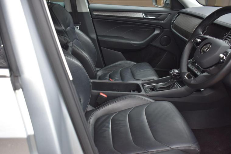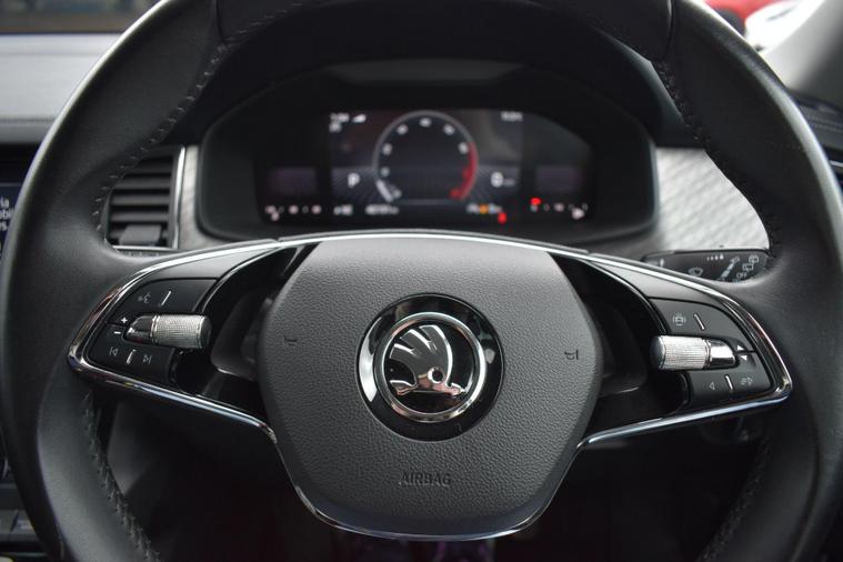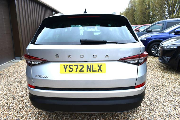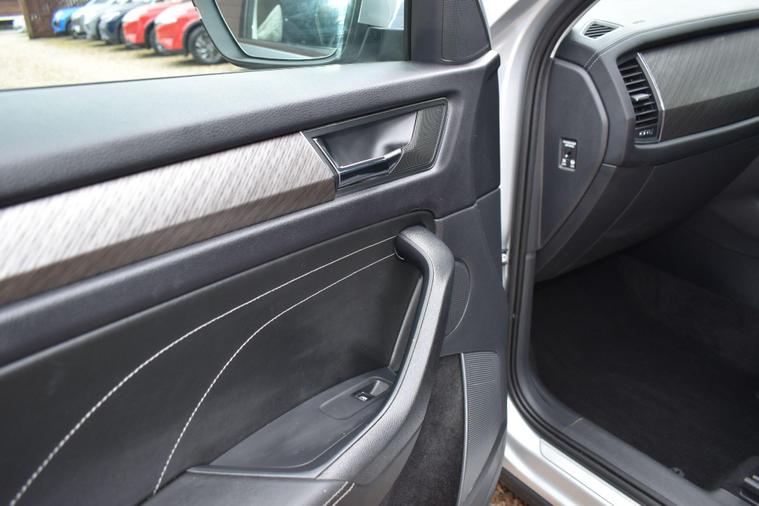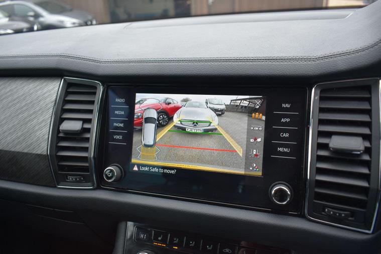 Finished in Silver with black leather interior. Finished in Silver with black leather interior, privacy glass, chrome roof rails, front and rear parking sensors, 19'' alloys, keyless entry, automatic, Bluetooth, DAB radio, electric seats and mmory, keyless start, air con, heated front seats, 7 seats, traction control, electric folding mirrors, reverse camera with guidelines, DAB radio, sat nav, electric boot, HPI clear, one owner from new, Skoda service history.... for further information please contact us on 01483334205. This 2022 Skoda Kodiaq TSI SE L Executive is a superb example, having had only one owner since new. This seven seat SUV boasts a 1.5 litre petrol engine and meets Euro 6 emissions standards. Inside, you'll find a wealth of technology designed for comfort and convenience, including wireless charging for your devices, dual zone climate control with a humidity sensor, and SmartLink which seamlessly integrates Android Auto and Apple CarPlay. The SE L Executive trim also features impressive Full LED Matrix headlights with an adaptive front light system, including cornering and all weather lighting functions, and an electrically adjustable driver's seat with a memory function.The Kodiaq TSI SE L Executive offers a compelling driving experience, with its 0-60mph acceleration achieved in just 9.5 seconds. These features collectively demonstrate how this particular Kodiaq provides a superior offering compared to other vehicles in its class. The combination of its spacious seven seat layout, efficient 1.5 litre petrol engine, and advanced technology makes it a practical and well equipped choice for families and individuals alike.