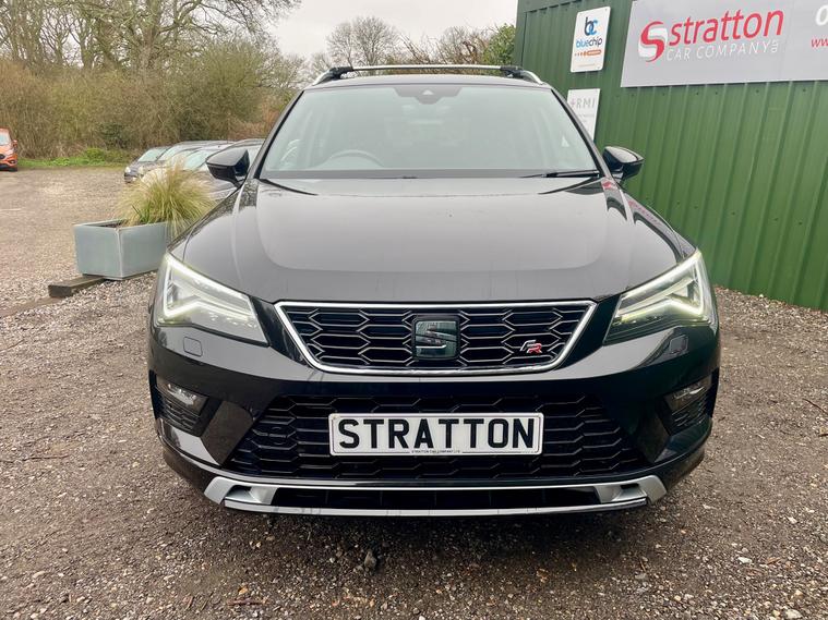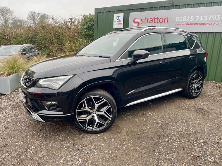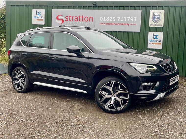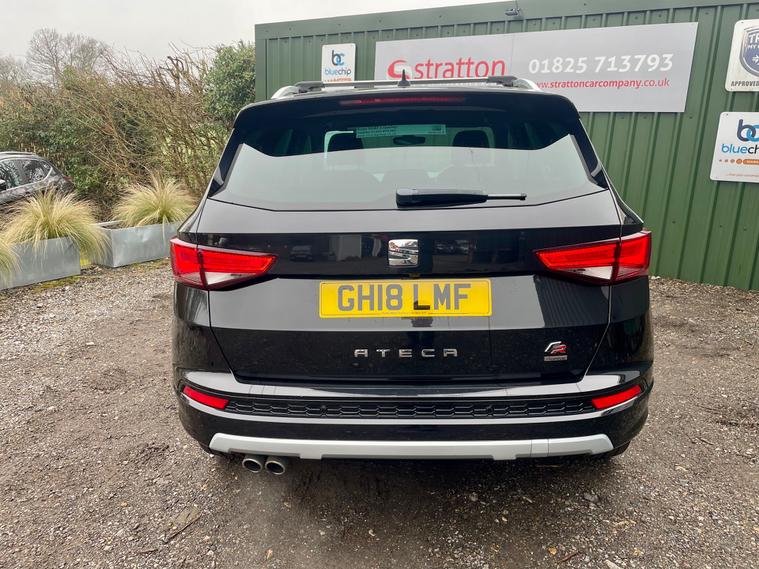 Stratton Car Company are excited to offer this Fantastic One Owner 2018/18 Seat Ateca 2.0 TSi FR 4 Drive 5 Door SUV Automatic, Finished in Black with a Grey Cloth Seats, This vehicle has a Full Service History , As part of the sale we will carry out a oil and filter service and Mot ready for the new owner. With the perfect specification comprising of the following Panoramic Glass roof, Rear Parking Camera, Electric Power Folding Mirrors, Electric Windows, Steering Wheel Audio Control, 19'' Alloy Wheels, Dual Climate Control , Multi Airbags, Aux-in, Front Fog Lights. This vehicle will undergo a complete and meticulous mechanical inspection which has the backing of a 3 month BLUECHIP extendable warranty. We must add at this juncture that the majority of our customers tend to extend to the 12 month all mechanical all electrical warranty at the extremely competitive knocked down price of just £399 + VAT. Full details can be viewed at www.strattoncarco Stratton Car Company have been established since 2004 and pride ourselves on delivering the best customer service and the highest quality , cars. We have traded from our current 2-acre site for in excess of 15 years. Authorised by FCA, we offer funding solutions, and possibly the best warranty on the market! Lastly, we are extremely proud of our reviews - please visit https:/ dealer's website Come and enjoy our non pressure sales environment.