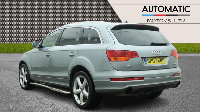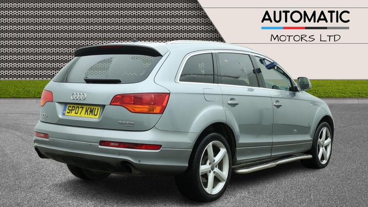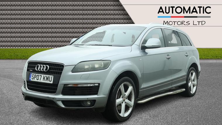 2 KEYS, 7 SEATS, FRESH SERVICE, FRESH MOT, SATNAV, PARKING SENSORS, CLIMATE CONTROL, LEATHER TRIM, 20'' ALLOY WHEELS, PRIVACY GLASSFor sale is a 2007 Audi Q7 3.0 TDI S line SUV with 77750 miles on the clock, powered by a diesel engine. This 5-door, 7-seater SUV comes with a MOT that expires on 21/07/2026. Equipped with a Tiptronic quattro transmission, this vehicle has a carbon footprint of 279 g/km and boasts 229 bhp. Additional features include an adjustable steering column/wheel, armrest, climate control, cruise control, and electric windows in the front and rear. If you're in the market for a spacious and versatile family vehicle, don't miss out on this Audi Q7 with its exceptional comfort, convenience, and driving performance.