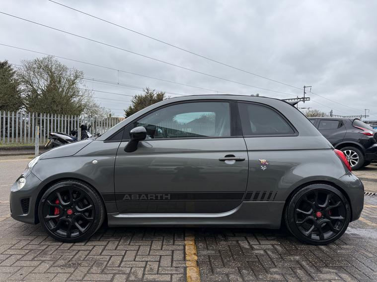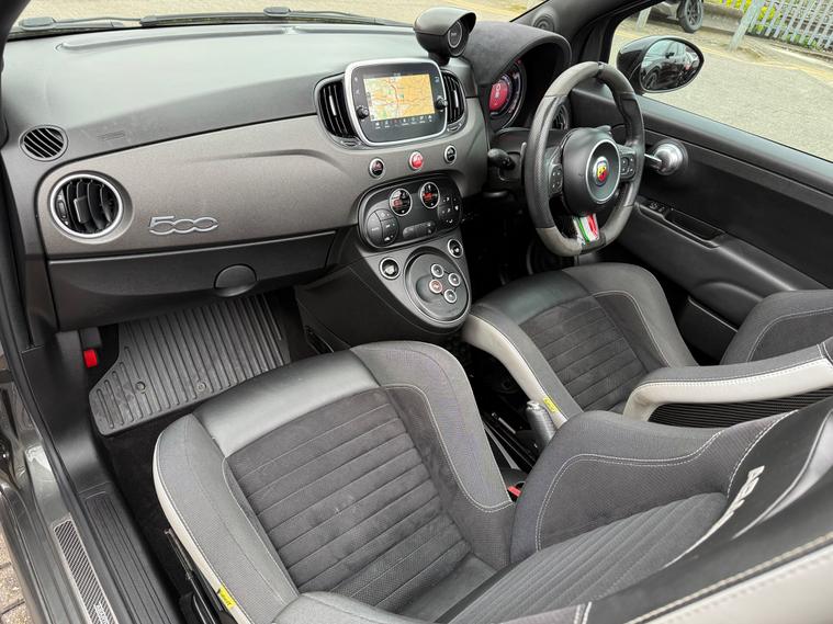 2 KEYS, ULEZ FREE, FRESH SERVICE, TOTAL OF 7 SERVICES (5 MAIN DEALER SERVICES), FRESH MOT, SATNAV, BLUETOOTH, CLIMATE CONTROL, TYRE INFLATION KIT, ALLOY WHEELS, HAD A RECENT TIMING BELT + WATER PUMP REPLACEMENT 24K MILES, 3 FORMER KEEPERSThis 2017 Abarth 595C 1.4 T-Jet Competizione Cabrio 2dr Petrol Auto Euro 6 (180 bhp) is a stylish convertible with only 37200 miles on the clock, making it a great option for those who love open-air driving. With a petrol engine, this car is ULEZ compliant and comes with a MOT that expires on 20/06/2026, providing peace of mind for the next few years. The 3-door vehicle has 4 seats, making it perfect for small families or groups of friends looking to take a road trip. Its features include 17in Alloy Wheels, Abarth Side Stripe and Door Mirrors, 7in Touchscreen Radio with NAV, BT, USB, and DAB, and HiFi by Beats, offering both style and convenience. With its sleek design and powerful 180 bhp engine, this Abarth 595C is sure to provide a thrilling driving experience for its lucky new owner.