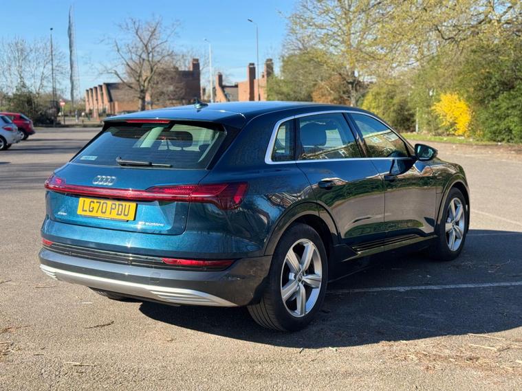 This 2020 Audi e-tron Technik boasts exceptionally low mileage for its age, having covered just 29, 530 miles. As an electric vehicle with Four Wheel Drive, it offers a smooth and responsive driving experience. The Technik trim level comes equipped with a 71 kWh battery, providing a maximum range of 194 miles when new. Charging is convenient, with a full charge at home taking approximately 9 hours and 10 minutes using a 7kW charger, while rapid public charging can take you from empty to 80% in as little as 34 minutes.The Audi e-tron Technik is designed for modern driving, featuring a large boot space for practicality. Its performance is notable, with an impressive 0-62mph acceleration time of just 6.8 seconds, demonstrating its dynamic capability. This particular model enhances your journey with the City Assist Pack, including Blind Spot Assistance, and HD Matrix LED Headlights with dynamic indicators for superior visibility. Additional features like Privacy Glass, an Air Quality Pack, and Parking System Plus with 360 degree sensors further elevate its appeal, offering peace of mind and comfort for all occupants.