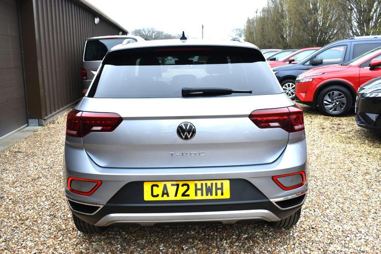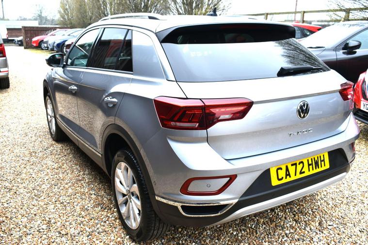 Finished in Silver with cloth interior, one owner from new, front and rear parking sensors, electric folding mirrors, air con, eco start/stop function, automatic, electric tilt/slide panoramic roof, park assist, sat nav, Bluetooth, DAB radio, full VW service history, HPI clear, finance available with this vehicle.... for further information please contact us on 01483334205. This 2022 Volkswagen T-Roc TSI Style is a superb example, having had only one owner since new. This stylish compact SUV is equipped with a responsive 1.5 litre petrol engine, meeting Euro 6 emissions standards. It features a Bluetooth mobile phone interface for seamless connectivity, and benefits from automatic headlight control with LED separate daytime running lights and a coming home leaving home feature. Further enhancing visibility and safety are LED Plus and LED Performance headlamps. For a more relaxed driving experience, the Driver Assistance Package includes adaptive cruise control.The T-Roc TSI Style offers impressive performance, achieving 0 to 62 miles per hour in just 8.3 seconds, a figure that demonstrates its agility compared to other vehicles in its class. Its fuel economy is also a strong point, achieving a highlight of 46 miles per gallon, which indicates its efficiency. Furthermore, this model boasts low CO2 emissions, making it a more environmentally conscious choice.