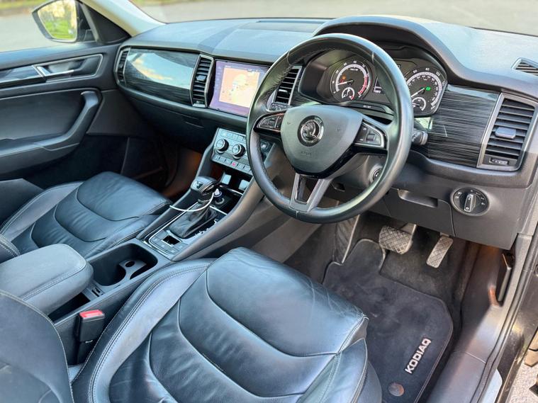 This 2019 Skoda Kodiaq TSI SE L offers exceptional practicality with its seven seat configuration, making it an ideal choice for families. Powered by an efficient 1.5 litre petrol engine and meeting Euro 6 emissions standards, this model combines sensible running costs with a smooth driving experience. The SE L trim level comes well appointed, featuring a rear view camera integrated with full LED rear lights for enhanced parking assistance. Inside, you'll find luxurious black leather upholstery and convenient folding tables on the rear of the front seats, perfect for longer journeys.FULL SKODA HISTORY 2025 at 96000 miles have brand new Megatronic and Dsg service done by Skoda well maintained car full dealer history up to 2025. March 2026 new mot and full service doneFurther enhancing its appeal, this Kodiaq includes the Driver Assistance Pack, which incorporates adaptive cruise control and blind spot assistance, alongside lane assist for added safety. The 0 to 60mph acceleration in just 9.6 seconds demonstrates a responsive performance, while its low insurance group rating means more affordable ownership. These features collectively position this Skoda Kodiaq as a superior option for those seeking a versatile, safe, and economical family vehicle.