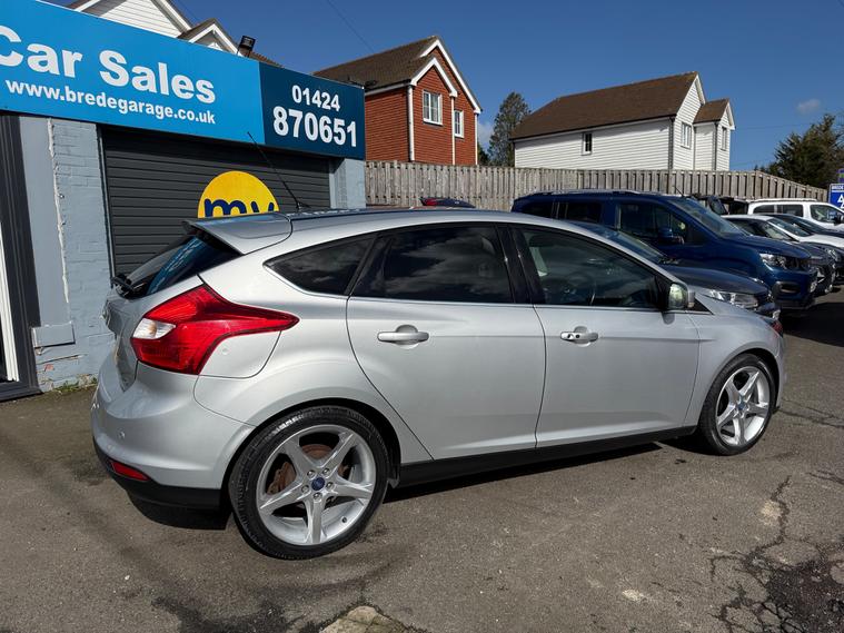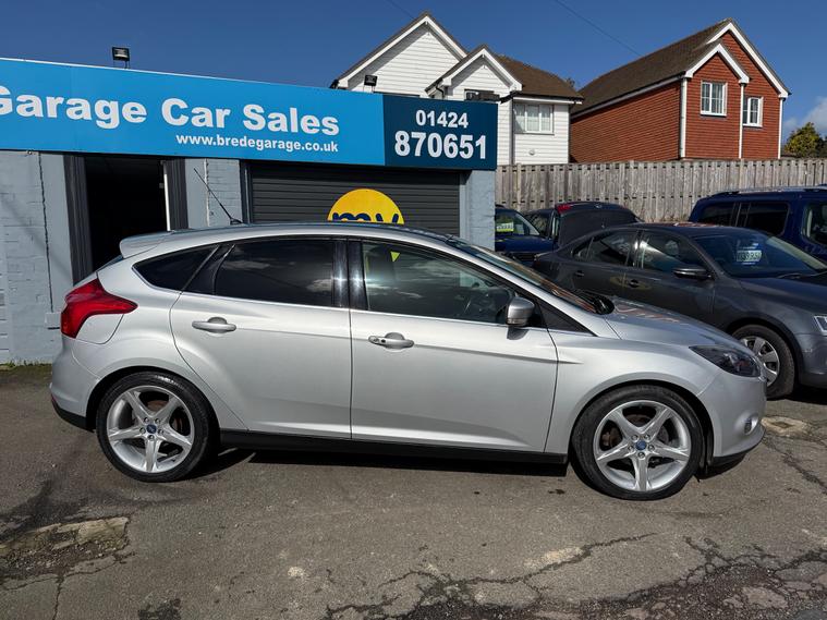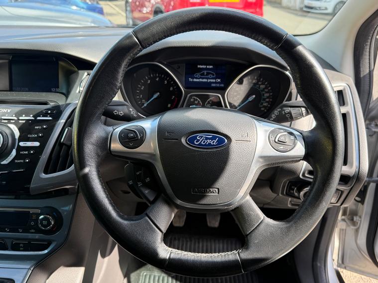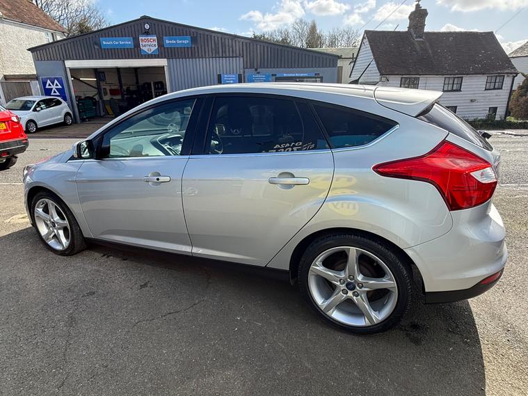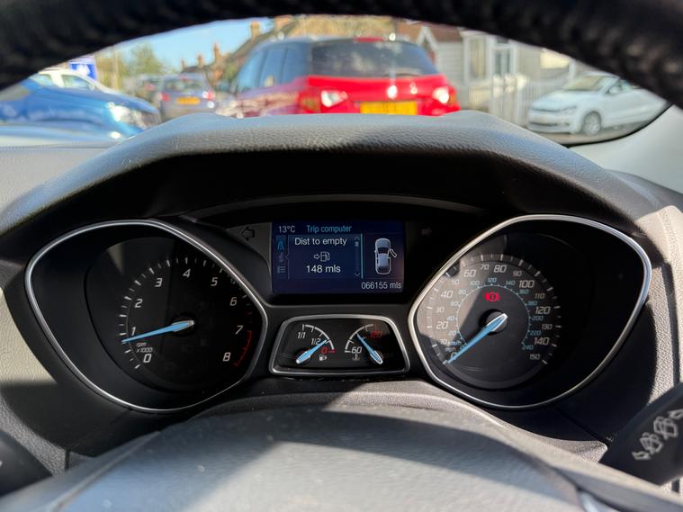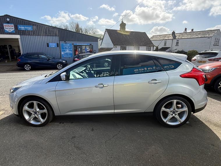 This 2014 Ford Focus 1.0T EcoBoost Titanium Navigator Hatchback with 66155 miles on the clock is a reliable and efficient choice for anyone in need of a spacious and practical vehicle. Powered by a petrol engine and featuring a manual transmission, this car comes with a valid MOT until 18/02/2027 and is ULEZ compliant, making it suitable for city driving. With 5 seats and 5 doors, it offers plenty of space for passengers and luggage, while also including features such as a 5in colour screen, Bluetooth handsfree and voice control, emergency assistance, as well as 12V power sockets in the front and rear. The Euro 5 (s/s) engine produces 125 ps, ensuring a smooth and responsive driving experience. Overall, this Ford Focus is a well-maintained hatchback that offers comfort, convenience, and peace of mind for its next owner.,