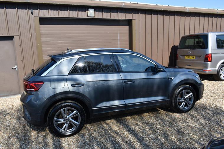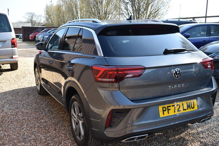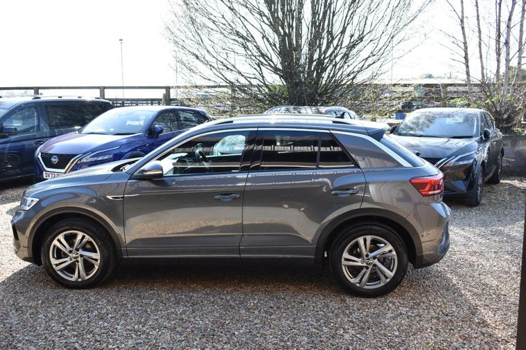 Finished in Indium Grey with cloth interior, one owner from new, full VW service history, chrome roof rails, privacy glass, front and rear parking sensors, 17'' alloy wheels, heated front seats, air con, park assist, eco start/stop function, sat nav, Bluetooth, DAB radio, paddle shifts, cruise control, HPI clear, finance available with this vehicle.... for further inforamtion please contact us on 01483334205.This 2022 Volkswagen T-Roc TSI R-Line is a superb example, having had only one owner since new. This stylish R-Line variant is powered by an efficient 1.5 litre petrol engine, meeting Euro 6 emissions standards. It comes equipped with a desirable Winter Pack, including heated seats for those colder journeys, and a Bluetooth mobile phone interface for seamless connectivity. The automatic headlight control with LED daytime running lights and coming home leaving home feature adds both convenience and safety, while the Air Care Climatronic air conditioning system with its active combination filter and two zone temperature control ensures a comfortable cabin environment for all occupants. Furthermore, the Discover Media Navigation System, complete with streaming and internet capabilities, also incorporates a front camera for enhanced parking assistance.Experience the impressive performance of this T-Roc, which achieves 0 to 62 miles per hour in just 8.3 seconds, demonstrating its responsive acceleration. This model also boasts a fuel economy of 46 miles per gallon, indicating its efficiency compared to similar vehicles. Its low CO2 emissions further highlight its environmentally conscious design. These combined attributes make this Volkswagen T-Roc TSI R-Line a compelling choice for those seeking a well equipped, economical, and engaging driving experience.