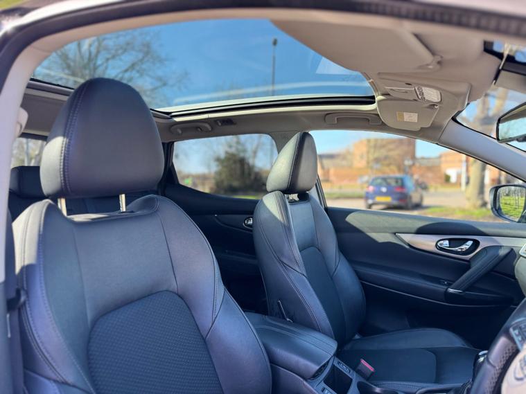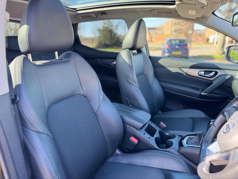 This 2020 Nissan Qashqai DIG-T Tekna offers a refined driving experience with its Euro 6 compliant 1.3 litre petrol engine. As a Tekna trim, it comes equipped with the desirable Smart Vision Pack, which includes front and rear parking sensors, alongside a rear view camera to aid manoeuvrability. Enhancing your journeys further is the impressive Bose 8 speaker premium audio system, ensuring excellent sound quality.The Qashqai also boasts the Glass Roof Pack, featuring a fixed panoramic sunroof that floods the cabin with natural light. Intelligent auto headlights automatically adjust to lighting conditions, providing convenience and safety. With low CO2 emissions, this Qashqai represents an efficient choice compared to many other vehicles in its class, making it a practical and enjoyable option for everyday driving.