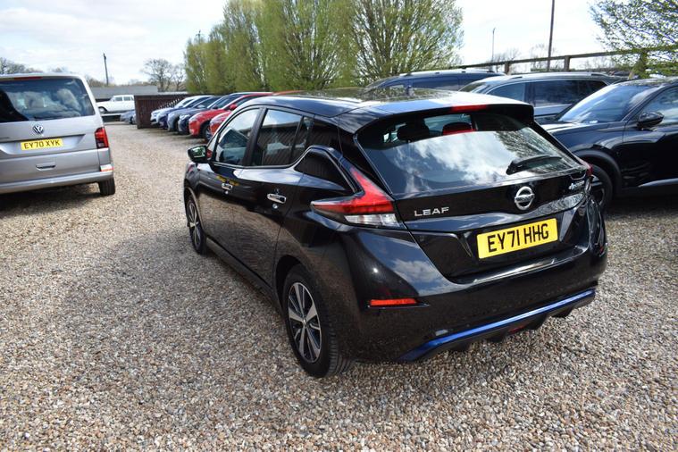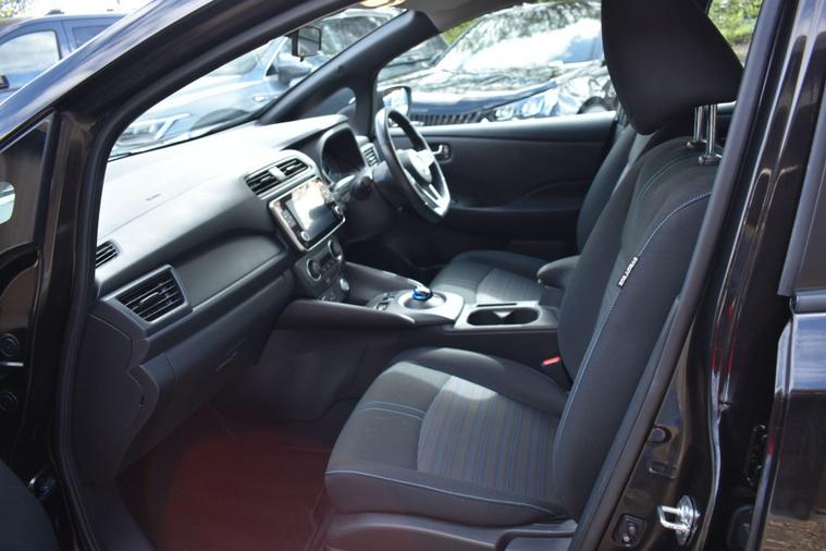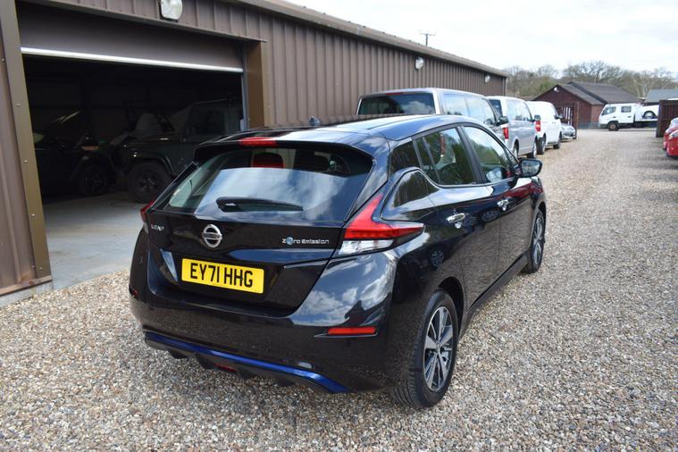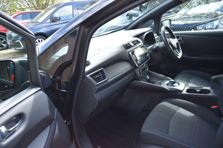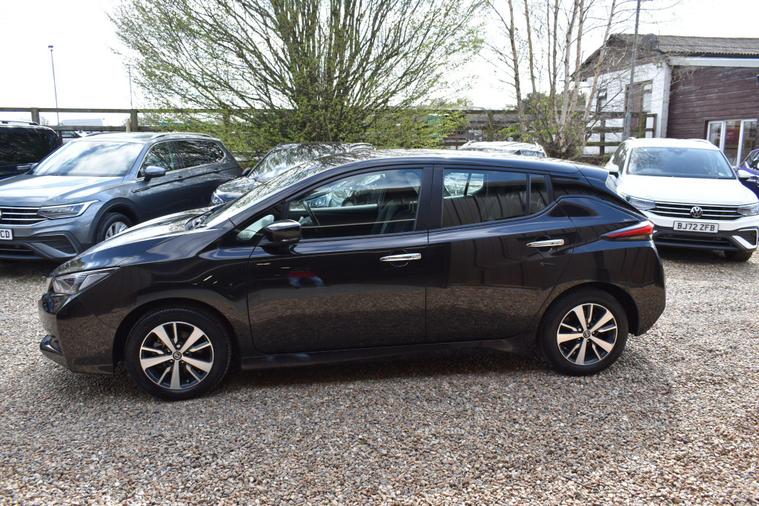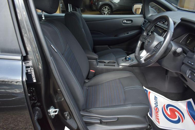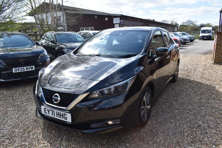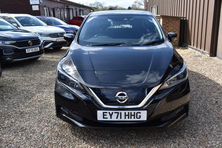 Finished in Black with cloth interior, one private owner from new, service history, 16'' alloy wheels, keyless entry, keyless start, air con, cruise control, reverse camera with guidelines, Bluetooth, DAB radio, privacy glass, HPI clear, finance available with this vehicle... for further information please contact us on 01483334205. This 2021 Nissan Leaf Acenta boasts exceptionally low mileage for its age, having covered just 10776 miles, and has been owned by only one careful keeper. As an electric vehicle with a 40 kWh battery, it offers a maximum range of 168 miles when new, making it a practical choice for daily commutes and longer journeys. Charging is convenient, with a full charge at home taking approximately 7 hours and 30 minutes using a 7kW charger, while rapid public charging can take it from empty to 80% in just 1 hour and 20 minutes. This Acenta trim also comes equipped with desirable features such as Blind Spot Intervention, Nissan i Key with Keyless Entry and Start Push Button, Automatic Air Conditioning, Intelligent Auto Headlights, and Intelligent Cruise Control.The generous boot space of this Nissan Leaf provides ample room for shopping, luggage, or sports equipment, highlighting its versatility for everyday life. The combination of its electric powertrain, impressive range, and advanced driver assistance systems like Blind Spot Intervention and Intelligent Cruise Control sets this Leaf apart from many other vehicles. The ease of keyless entry and automatic climate control further enhance the driving experience, ensuring comfort and convenience for both the driver and passengers.