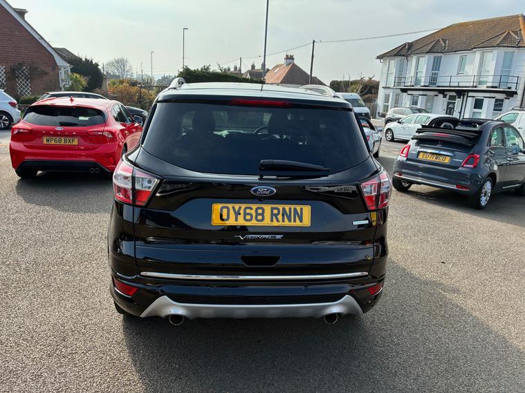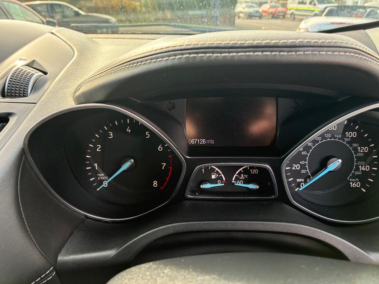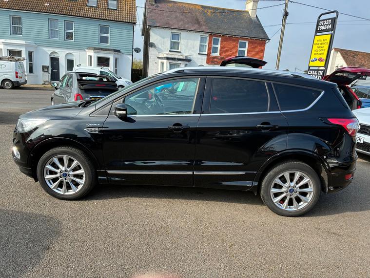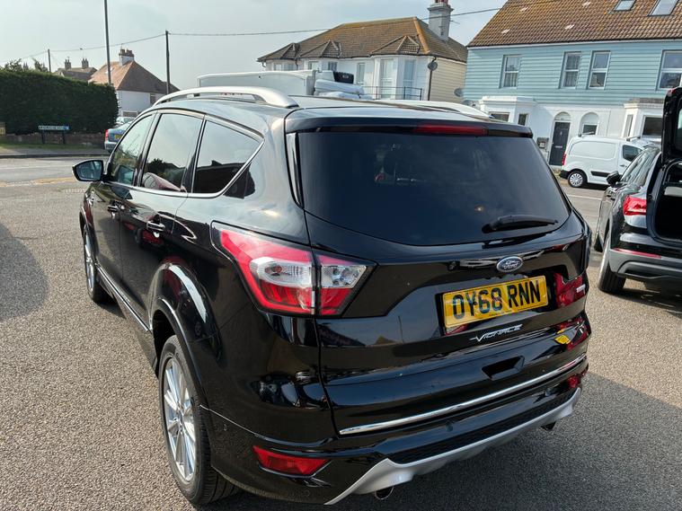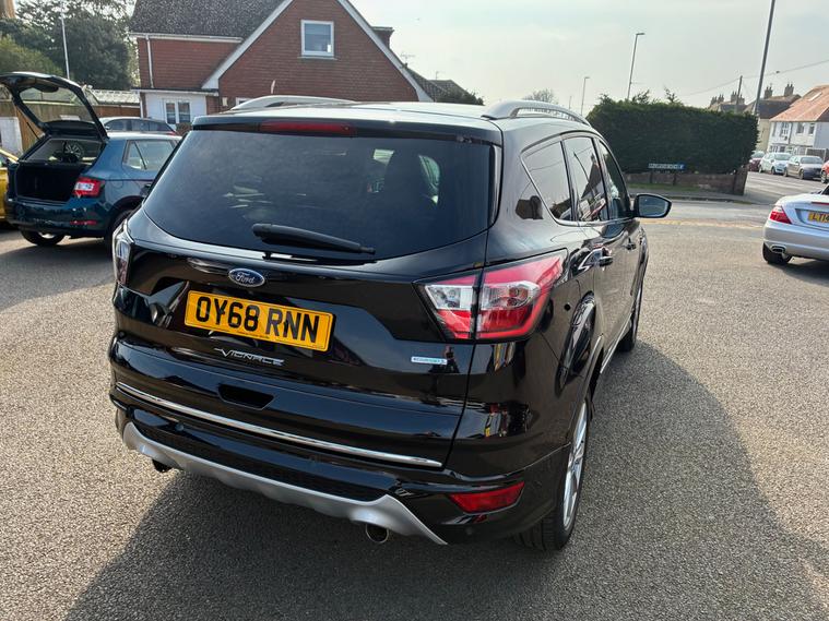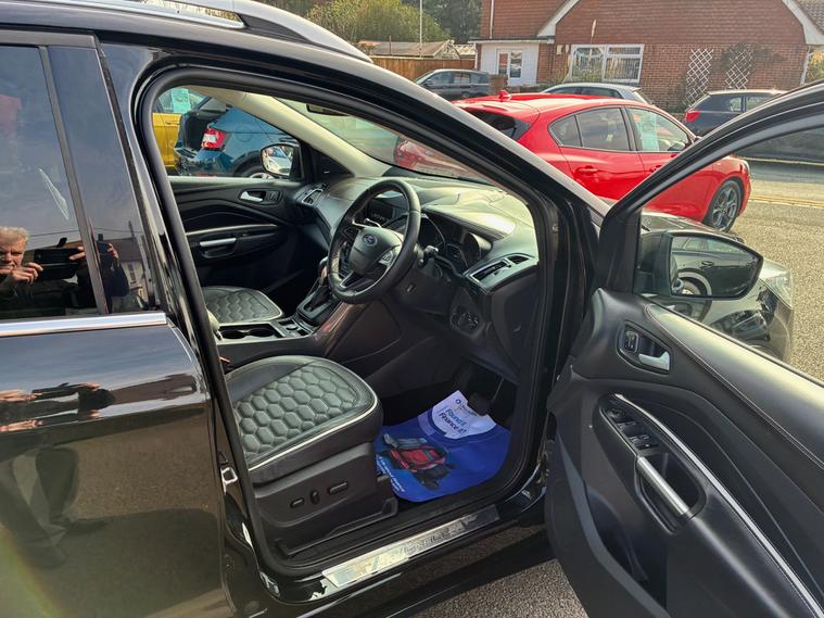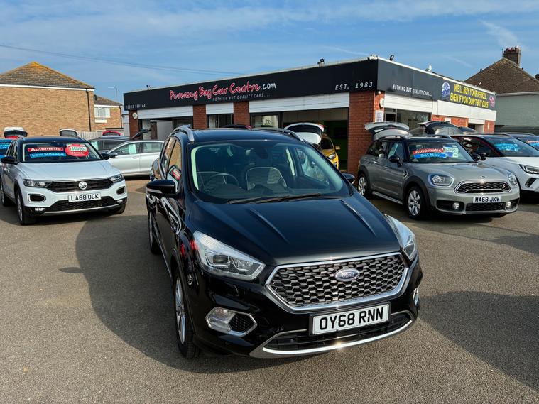 A magnificent Ford Kuga Vignale 1.5T EcoBoost SUV 5 Dr (6) Petrol Auto AWD Euro 6 (s/s) (176 ps) with low mileage of 67, 100.This exceptional Top-of-the-range, luxury-focused compact SUV featuring AWD, automatic transmission, and Euro 6 compliance. It features unique Vignale styling, premium leather interiors, and enhanced, agile handling.This Ford Kuga finished in Black looks statesmanlike with an imposing presence.The sculptured curves on the bonnet , muscular haunches on the rear and chrome exterior pack ooze luxury and are a hallmark of this premium model.The lavish interior is finished in optional and expensive ruched soft Windsor leather in Black.Premium trim featuring exclusive grille, bumper, and leather-wrapped dashboard, SYNC 3 infotainment with an 8-inch touchscreen, Apple CarPlay/Android Auto, and a premium 9-speaker Sony sound system.Superbly engineered to create a fine motoring environment.,