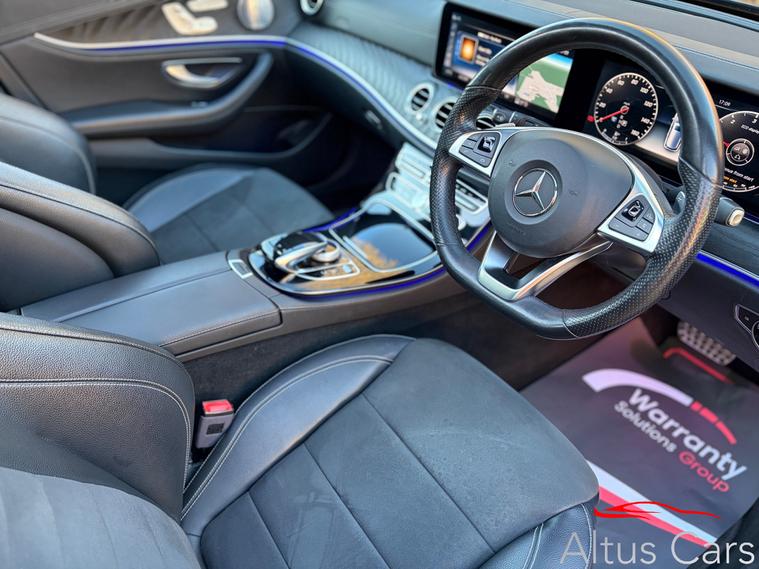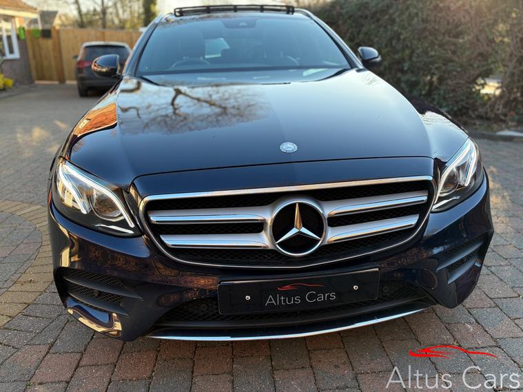Stunning One Owner High Specification Cavansite Blue 2017 Mercedes-Benz E Class 2.0 E220d AMG Line (PREMIUM PLUS) Estate, 5dr Diesel G-Tronic+ Euro 6 (s/s) (194 ps) Only 49086 miles with full service history. Massive spec including Apple Carplay/Android Auto, Burmester surround sound, Parking Pilot, Panoramic opening roof, Reversing camera with guidance, Active brake assist, Storage package, Direct select shift paddles, Widescreen cockpit, Traffic sign assist, COMAND online, DAB radio, Cargo net & bumper protection, Heated front seats, Heated windscreen, Interior lighting package, Electric seats with memory, Adaptive high beam assist plus, LED Intelligent headlights, 19in Alloy Wheels - AMG 5-Twin-Spoke Design, Mirror package, Mercedes detachable roof bars. This great specification estate car is ULEZ compliant and comes with a MOT expiring on 15/03/2027. It's 1 owner has lovingly maintained it from new making this a very special car indeed with the additional benefit of cheap road tax. Must be viewed to fully appreciate.We are a family business and pride ourselves on supplying top quality used cars. This Mercedes will come with 6 months comprehensive WSG Platinum warranty & roadside assistance plus a full Motor Check provenance report for your peace of mind. Optional 12 months AA cover and 5 day driveaway insurance also available. P/ex welcome