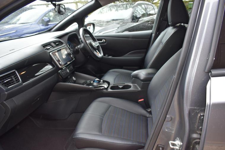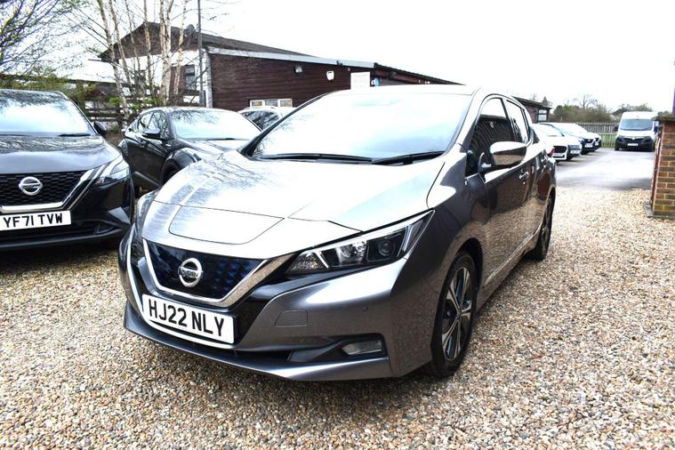 Finished in Grey with black leather interior, one private owner from new, full Nissan main dealer service history, front and rea rparking sensors, 17'' alloy wheels, privacy glass, heated steering wheel, heated front seats, electric folding mirrors, cruise control, keyless start, keyless entry, air con, reverse camera with guidelines, sat nav, Bluetooth, DAB radio, HPI clear, finance available with this vehicle - for further details on this vehicle or funding options please contact the office on 01483334205. This 2022 Nissan Leaf N Connecta is a superb example, having had only one owner since new. As an electric vehicle with a 40 kWh battery, it offers a maximum range of 168 miles when fully charged. Home charging on a 7kW wallbox takes approximately 7 hours and 30 minutes, while rapid public charging can replenish the battery from empty to 80% in just 1 hour and 20 minutes. This N Connecta trim level comes equipped with a DAB radio featuring Apple CarPlay and Android Auto, a Heat Pack for cosy journeys with heated seats and steering wheel, and a Tech Pack that includes a 360 degree camera system along with front and rear parking sensors. Keyless entry is provided by the Nissan i-Key and Start Push Button, and Intelligent Auto Headlights ensure optimal visibility.The generous boot space in this Nissan Leaf provides ample room for your shopping or luggage, making it a practical choice for everyday use. The inclusion of features like the 360 degree camera and parking sensors, alongside the heated seats and steering wheel, clearly sets this vehicle apart, offering enhanced comfort and convenience compared to many other electric cars.