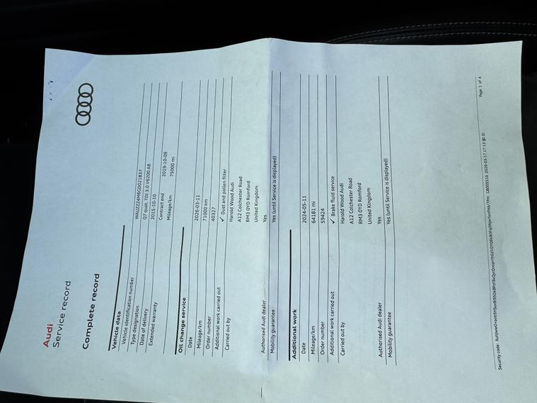 For sale is a 2015 British-made Audi Q7 3.0 TDI V6 S line SUV with a powerful Diesel engine and a smooth Tiptronic quattro transmission, boasting 71265 miles on the odometer. This spacious 5-door SUV comfortably seats 7 passengers and is ULEZ compliant, making it ideal for urban driving. With its MOT valid until 22/12/2026, you can enjoy peace of mind for years to come. Equipped with modern features such as 2 x SDXC Card Readers, AMI - Audi Music Interface, and Audi Connect - 3 Month Trial, this vehicle offers a seamless driving and entertainment experience. This stylish SUV also comes with an AUX-IN Socket and a 6-channel amplifier to enhance your audio experience. With its sleek design and Euro 6 (s/s) rating, this Audi Q7 is the perfect combination of luxury and practicality, ready for any adventure on the dealer's website delivery available.Part exchange welcome.Extended warranty options available.Trading standards approved dealership.AA standards approved dealership.Autotrader highly rated dealership.