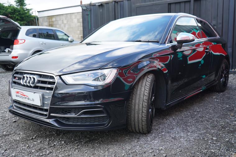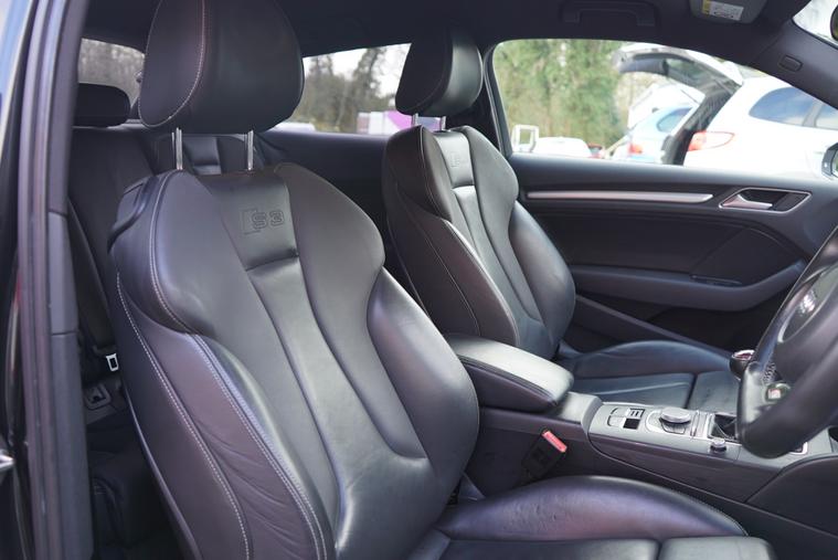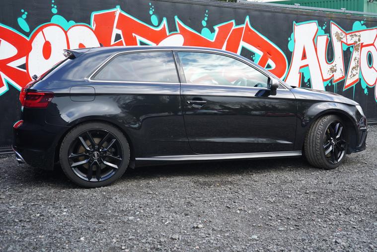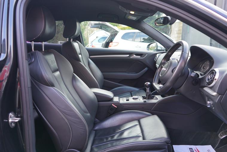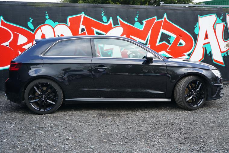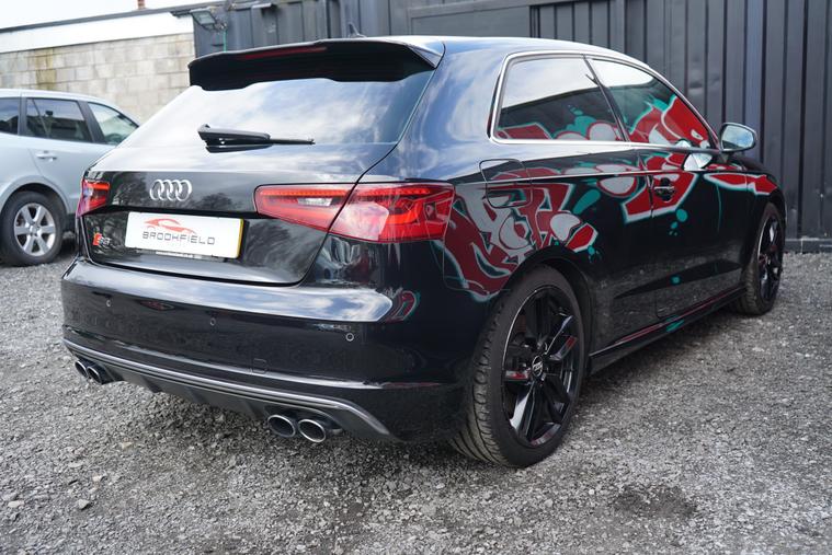Brookfield Autos are proud to present to market our lovely low mileage 2014 Audi S3 3dr Manual. Supplied in Phatom Black, and complimented by a black nappa leather and alcantara interior, it presents beautifully. Metallic Black alloy wheels, privacy glass and trademark S3 quad exhaust and matte chrome wing mirror covers complete the look. On the interior, it has a flat bottomed multifunction steering wheel, Black Styling Pack, Advanced Audi Key, Keyless Start, satellite navigation, DAB digital radio. Only 3 owners from new, with a superb service history record. An absolute credit to its previous keepers, we think you will struggle to find a better cared for example in better condition - It is absolutely immaculate and not abused like so many others on the market. Comfortable and sedate when it needs to be, with the legendary Quattro all-wheel drive system always on hand should conditions deteriorate and 297 horsepower under your right foot, this is the perfect all round vehicle.