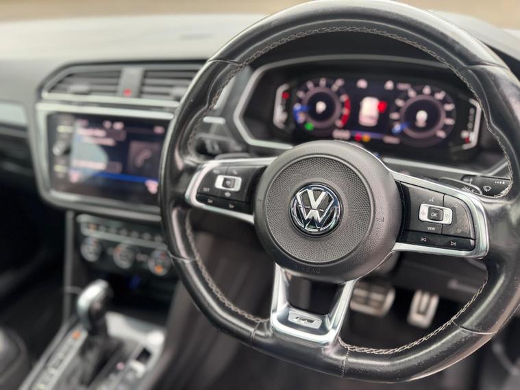 This 2020 Volkswagen Tiguan TSI EVO R-Line Tech offers an exceptional blend of style and practicality, boasting a low insurance group rating. As a Euro 6 compliant model, it features a responsive 1.5 litre petrol engine, delivering an impressive 0-62mph acceleration in just 9.2 seconds. Inside, you'll find the advanced Discover Navigation Pro system, complete with a touch screen, DVD playback, integrated voice activation, and gesture control, alongside Car-Net Guide and Inform Plus and App-Connect for seamless connectivity. Further enhancing your driving experience are the Tyre Pressure Monitoring System, a Winter Pack including heated seats, automatic dusk sensing headlights, and the convenience of keyless entry, keyless start, and a full electric tailgate operation.The Tiguan R-Line Tech stands out with its remarkably low CO2 emissions, making it an environmentally conscious choice. Its generous boot space ensures you have ample room for all your luggage or shopping needs. These highlights demonstrate how this Tiguan offers a superior ownership experience compared to other vehicles in its class, combining efficiency, comfort, and advanced technology in a well appointed package.
