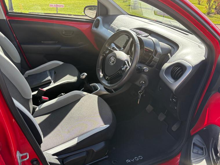This 2014 Toyota Aygo 1.0 VVT-i x-play Hatchback with a 5-speed manual transmission runs on petrol, has 50000 miles, and comes with a MOT that expires on 15/04/2026. This 5-door, 4-seater vehicle is ULEZ compliant, making it perfect for driving in low emission zones. With 15in steel wheels, black carbon effect diffuser, and body coloured door mirrors and handles, this hatchback is both stylish and practical. Other features include electric and heated door mirrors, ensuring safety and convenience on the road. This Euro 5 compliant car with 68 ps is the perfect blend of efficiency and performance, making it a great choice for anyone in the market for a reliable, fuel-efficient vehicle.,
