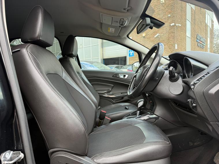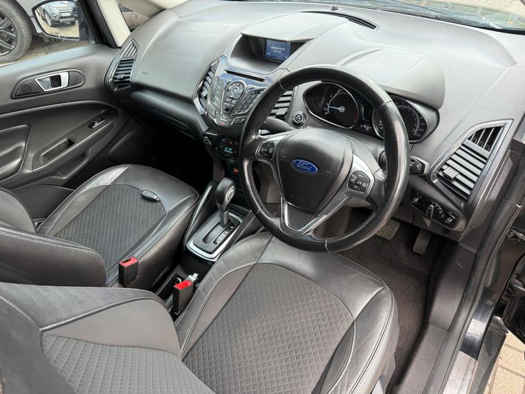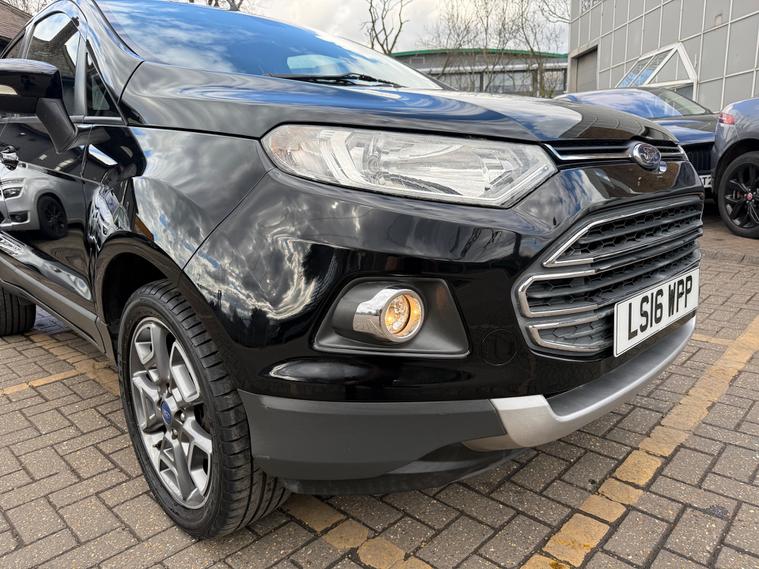 2 KEYS, ULEZ FREE, FRESH SERVICE (TOTAL 7 SERVICES), PARKING SENSORS, BLUETOOTH, MOT 22/12/2026, 3 FORMER KEEPERS. This 2016 Ford Ecosport 1.5 Titanium SUV with only 41309 miles on the clock is the perfect family vehicle, with 5 seats and 5 doors providing ample space for both passengers and cargo. Powered by a reliable petrol engine, this SUV is ULEZ compliant and comes with an MOT that doesn't expire until 22/12/2026. The car is equipped with convenient features such as a 12V Power Socket in the front, AUX and USB connections, and a Radio CD Player MP3 Compatible, ensuring a comfortable and enjoyable driving experience. Its sleek 17in Alloy Wheels and Euro 5 (112 ps) Powershift 2WD make it both stylish and efficient, ensuring a smooth and powerful ride.