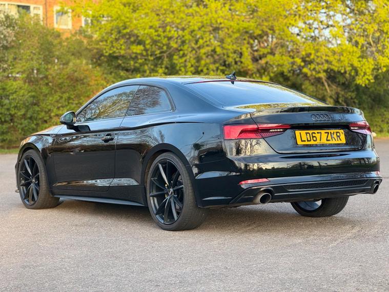 This 2017 Audi A5 TFSI S line boasts a full service history and a clear vehicle history check, offering you peace of mind. This stylish coupe features a 2.0 litre petrol engine, meeting Euro 6 emissions standards. It comes equipped with eye catching 19 inch 10 V spoke design alloy wheels, and advanced Matrix LED headlights with dynamic indicators, complemented by LED rear lights. For convenience, it includes a parking assistance pack with a 360 degree camera and front and rear sensors, along with privacy glass and heated, electrically adjustable folding door mirrors.WE JUST DID A FULL SERVICE NEW BRAKE PADS 2 rear tyres are brand new new and refurbished all wheel in powered coated in Owen This Audi A5 TFSI S line offers excellent running costs, achieving an impressive 50 miles per gallon, which is better than many similar vehicles. Its low CO2 emissions and low insurance group also contribute to its affordability. Furthermore, you will appreciate the generous boot space, making it practical for everyday use and longer journeys. A 3 month warranty is included for added reassurance.