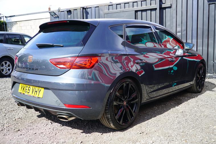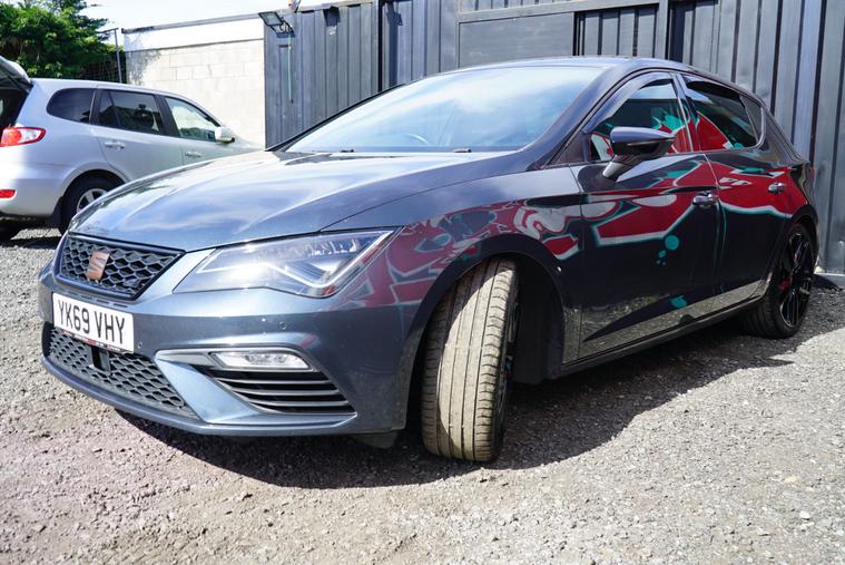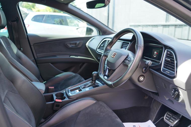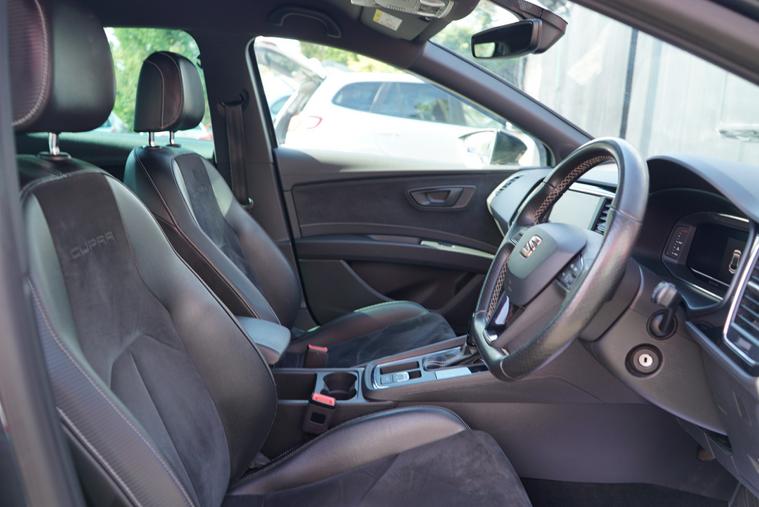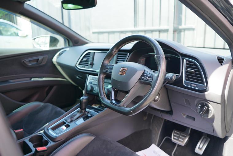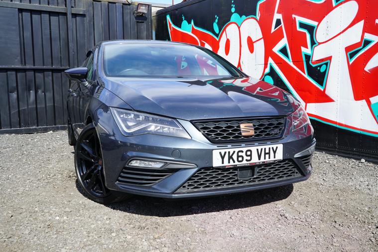 Brookfield Autos are proud to present this fantastic 2019 Seat Leon Cupra 290 finished in Magnetic Grey with the Cupra Bronze Accents. This sporty hatch features the DSG Gearbox, Black Leather and Microsuede Interior, Cruise Control, Digital Cockpit, Dual Climate Control, Auto Hold Brake as well as standard features. The alloys are faultless and wrapped in premium UHP.The SEAT Leon Cupra 290 is equipped with several features designed to enhance your driving experience.Dual-zone climate control ensures a comfortable environment for both driver and passengers. The large boot space is a real plus, offering practicality that rivals struggle to match. Furthermore, the impressive acceleration, reaching 0-62mph in just 4.4 seconds, demonstrates its superior performance compared to similar vehicles.