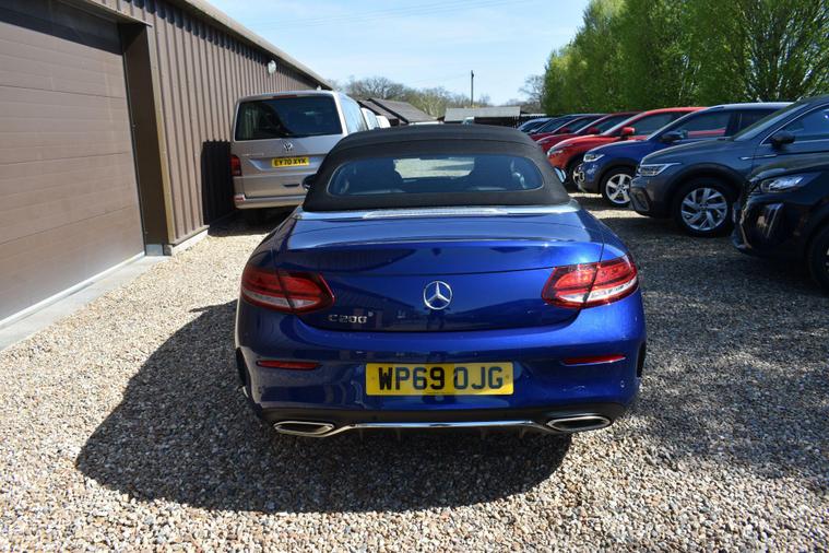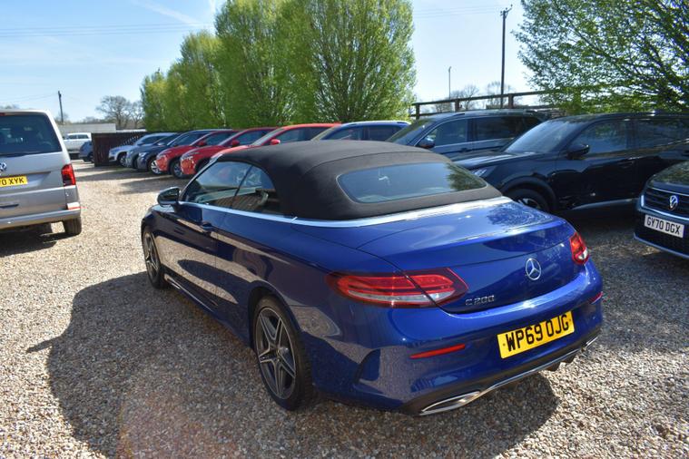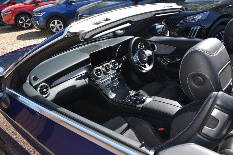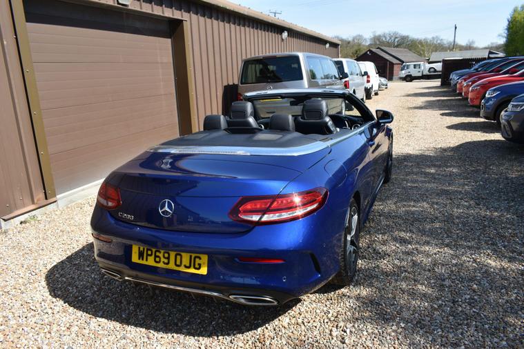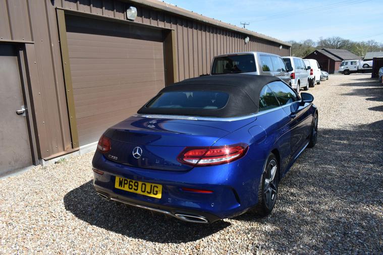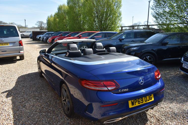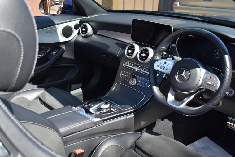 Finished in Blue with black half leather/suede interior, 18'' AMG alloy wheels, keyless start, front and rear parking sensors, heated front seats, electric front seats, electric roof, paddle shifts, reverse camera with guide lines, cruise control, electric folding wing mirrors, sat nav, Bluetooth, DAB radio, HPI clear, finance available with this vehicle... for further informaion please contact us on 01483334205.This 2019 Mercedes Benz C Class C200 AMG Line (Premium) boasts exceptionally low mileage for its age, having covered just 27, 655 miles. Powered by a 1.5 litre petrol engine and meeting Euro 6 emissions standards, this model offers a refined driving experience. It comes equipped with the desirable AMG Line trim and Premium Package, enhancing its appeal with features such as LED headlights, Android Auto and Apple CarPlay integration, Bluetooth connectivity, and wireless phone charging. For convenience, it includes Active Parking Assist with front and rear sensors, a reversing camera, and heated front seats, all managed through the THERMATIC two zone automatic climate control system.The generous boot space provides ample room for luggage or shopping, making it a practical choice for everyday use and longer journeys. Furthermore, its low CO2 emissions indicate a more environmentally conscious performance compared to many other vehicles in its class. These highlights, combined with its comprehensive feature set and excellent provenance, position this Mercedes Benz C Class as a superior option for discerning buyers.