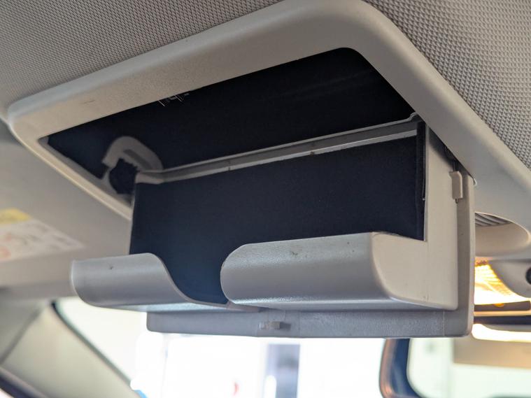 - driver and passengers sun visor with covered vanity mirror and ticket strip on drivers side