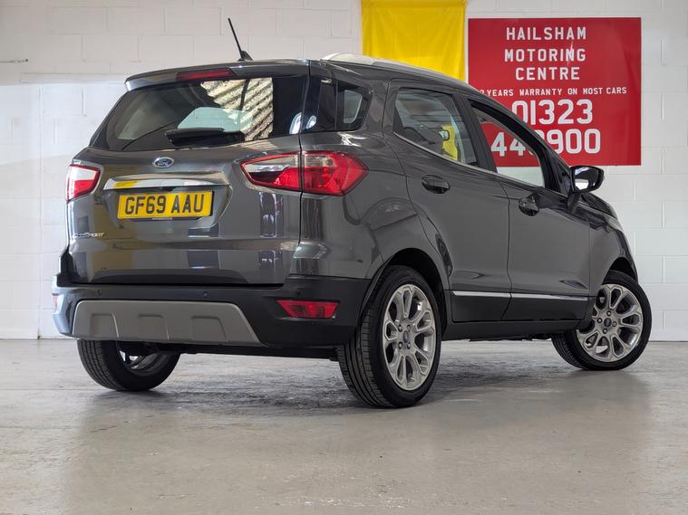 **24 MONTHS PARTS & LABOUR PEACE OF MIND NATIONAL WARRANTY INCLUDED IN THE PRICE**Hailsham Motoring Centre are pleased have back this ULEZ compliant 2019 Ford Ecosport 1.0T EcoBoost GPF Titanium SUVforsale, with ONLY TWO OWNERS FROM NEW and 86, 100 miles. This car comes with SERVICE HISTORY which shows the TIMING BELT & OIL PUMP KIT being replaced at 73, 079 miles on the 14/02/2025 by JMG the Independent Ford specialist. The car will leave with an interim service, a new MOT and a PDI. Finished in Magnetic greywith charcoal Titaniumcloth trim.**WHY BUY FROMUS****Established In 1980****24 Month Warranty On All Cars Over £4500, & Those Not Covered By A ManufacturersWarranty****6 Months Warranty On All Van Over £4500, & Those Not Covered By A ManufacturersWarranty****All Our Cars Are Hpi Clear So YouCan Buy With Confidence****Competitive Finance RatesSubject ToStatus****Multi Branches****Open 7 Days a Week Inc BankHolidays****Monday - Friday - 8.30amto 6pm****Saturday - 9.00am to 5pm****Sunday- 10am to 4pm****Bank holidays 10am to 4pm**For more pictures and a walk around videopleasego to https:/ dealer's website call to arrange viewing and atest drive on01323300259.Here at Hailsham Motoring Centre, we have up to 50 cars &asmall selection vans on show, also at our Hampden Park branch we have up to 50 further cars & a small selection vans available for viewing, please call 01323300259 for more info.For more information on our Ecosport please see the benefits below as stated,
