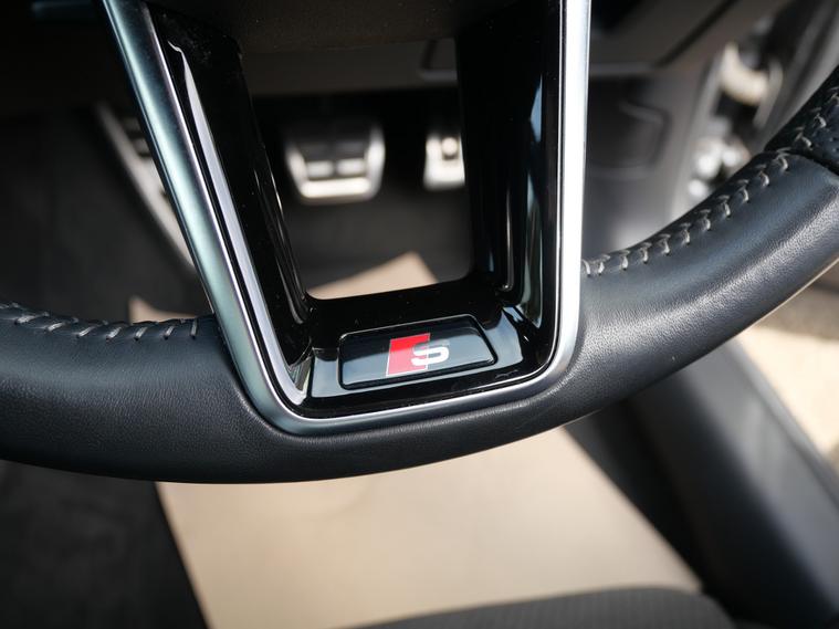 - perforated leather steering wheel with contrast stitching