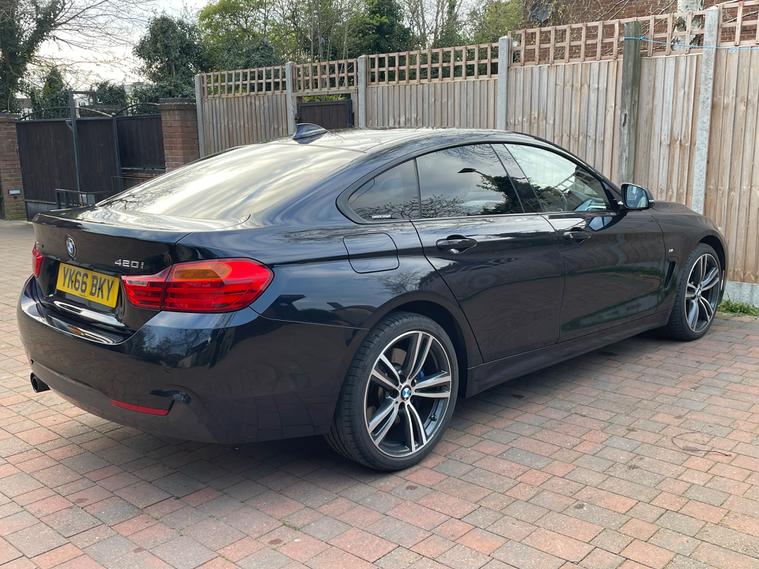 This 2016 BMW 4 Series Gran Coupe has 53810 miles on the clock and is powered by a Petrol engine. It is a ULEZ compliant vehicle with an MOT that expires on 23/09/2026. This 5-door Hatchback comes with 5 seats, making it a practical choice for families or those needing extra space. The car includes features such as Carbon Black finish, M Sport Plus Package, Sun Protection Glazing, M Sport Braking System, and a Loudspeaker System by Harman Kardon, giving it a luxurious and sporty feel. With its 2.0 420i M Sport engine producing 184 PS and an Auto xDrive transmission, this BMW offers a smooth and powerful driving experience. Whether you're commuting in the city or going for long road trips, this stylish and high-performance car is bound to impress.