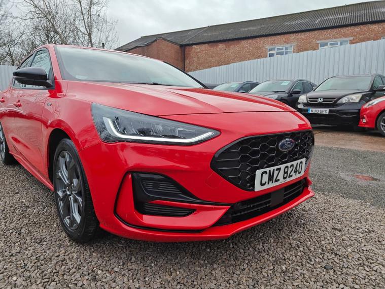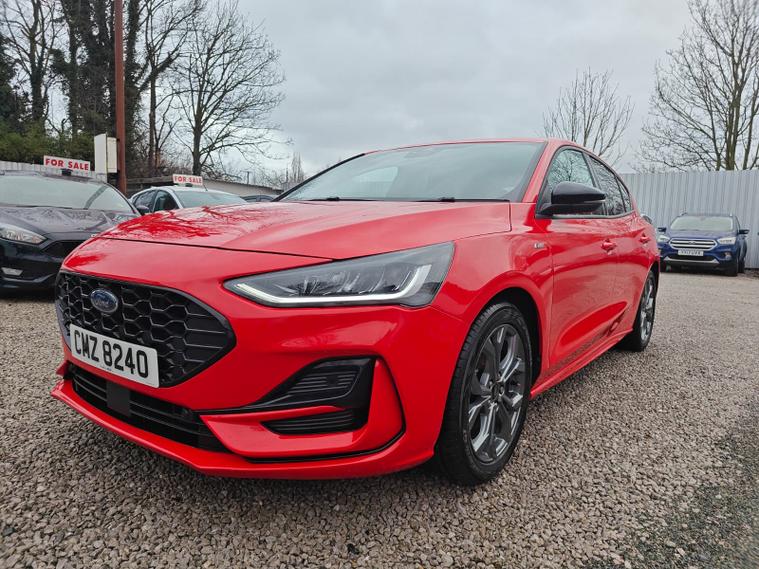 PETROL HYBRID! BEAUTIFUL EXAMPLE! MK4.5! 2023! FULL-SERVICE, A NEW 12-MONTH MOT AND 6-MONTH WARRANTY INCLUDED! HUGE RANGE OF FEATURES! WE ARE PROUD TO PRESENT YOU THIS LOVELY FORD FOCUS ST-LINE X FINISHED IN RED WITH GENUINE MILEAGE GUARANTEED, GREAT ON FUEL, VERY ECONOMICAL, SMOOTH AND COMFORTABLE DRIVE, CHEAP INSURANCE (GROUP 15E), 6 SPEED GEARBOX, 123 BHP, IDEAL CAR ALL ROUND. THIS VEHICLE HAS AMAZING FEATURES SUCH AS 17-INCH ALLOY WHEELS, HUGE TOUCH SCR EEN, FRONT & REAR PARKING SENSORS, POWER FOLDING WING MIRRORS, AUTO HOLD, ELETRIC HANDBRAKE, PRE COLLISION ASSIST SPEED SIGN RECOGNITION, LANE KEEPING SYSTEM, HILL START ASSIST, CRUISE CONTROLDAB, CD, FM/AM RADIO, USB BLUETOOTH CONNECTIVITY, AUTOMATIC DIMMING REAR VIEW MIRROR, AUTOMATIC HEADLIGHTS, SAT NAV, APPLE CARPLAY, ANDROID AUTO, LED DAY TIME RUNNING LIGHTS, AIR CONDITIONING, TINTED SUN PROTECTION GLASS, HEATED FRONT WINDSCREEN, SPARE WHEEL, TYRE PRESSURE MONITORING SYSTEM, ALL ELECTRIC WINDOWS, AND MANY MORE! NATIONWIDE DELIVERY AT COMPETITIVE PRICE. CALL NOW FOR MORE INFORMATION! VIEWINGS, INSPECTIONS AND TEST DRIVES ARE WELCOME. THIS VEHICLE IS CATEGORY S HOWEVER, ONLY THE DRIVER'S SIDE HEADLIGHT AND FRONT BUMPER HAVE REPLACED. PICTURES OF THE DAMAGE ARE AVAILABLE TO BE SEEN. WE ARE CONFIDENT YOU WILL NOT BE DISAPPOINTED WITH OUR EXTENSIVE RANGE OF QUALITY USED CARS. OUR VEHICLES ARE INSPECTED AND TEST-DRIVEN BY MECHANICS AND CLEANED TO A HIGH PROFESSIONAL STANDARD. WE OFFER OTHER SERVICES SUCH AS DEEP CLEAN VALETING & DETAILING, AND KEY REPLACEMENTS OR LOST KEYS (MOBILE). WE ARE LOCATED AT 1093 KINGSBURY ROAD, CASTLE VALE, BIRMINGHAM, B35 6AH. WE ARE OPEN 7 DAYS A WEEK, 09:00 PM TO 05:00 PM. SUNDAYS 11 AM TO 4 PM. FOR MORE INFORMATION, PLEASE VISIT OUR WEBSITE OR CALL US ON 01215403278 OR 01215403278. ALL WHATSAPP, TEXT AND EMAIL INQUIRIES ARE WELCOME. FOLLOW US ON INSTAGRAM AND FACEBOOK. WE CAN RESPOND TO YOUR MESSAGE OUT OF WORKING HOURS, SO PLEASE FEEL FREE TO GET IN TOUCH! FOR FURTHER VEHICLES AND DETAILS, PLEASE VISIT OUR WEBSITE dealer's website